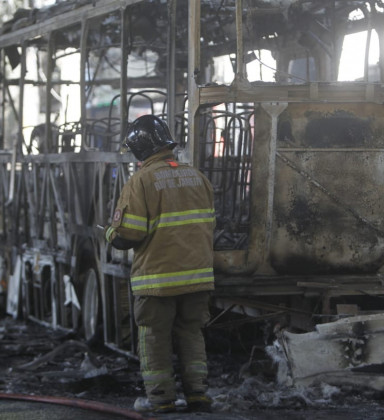REGIÃO CENTRAL Ônibus é queimado em reação à operação policial no Morro dos Prazeres Na ação, o chefe do tráfico da localidade, Claudio Augusto dos Santos, o 'Jiló', e seis criminosos morreram