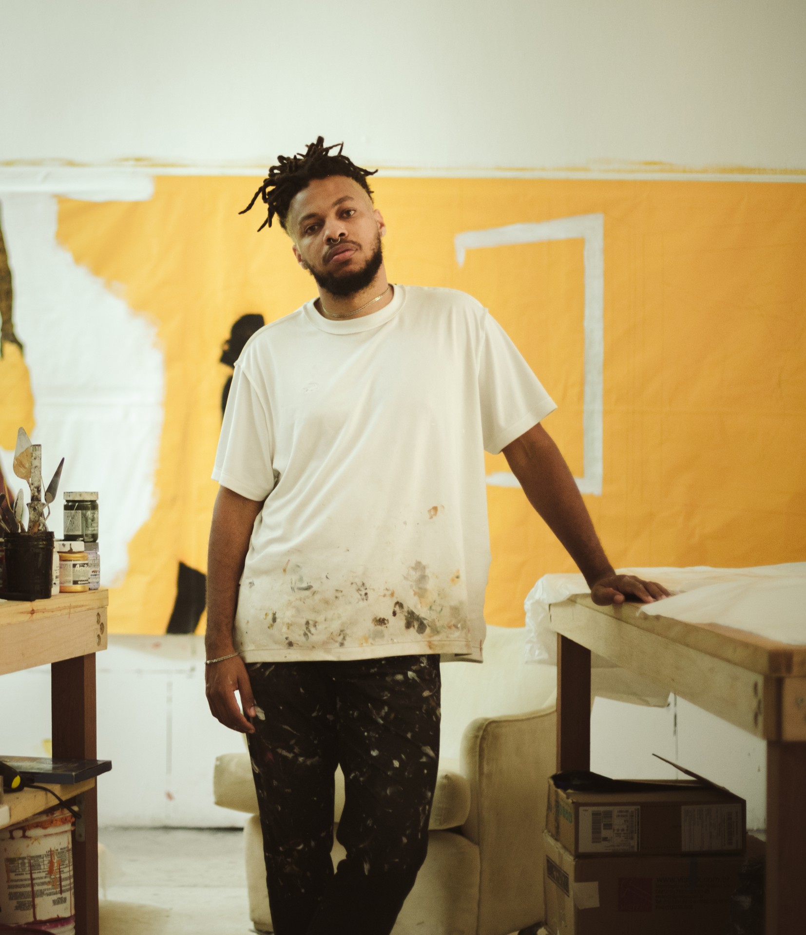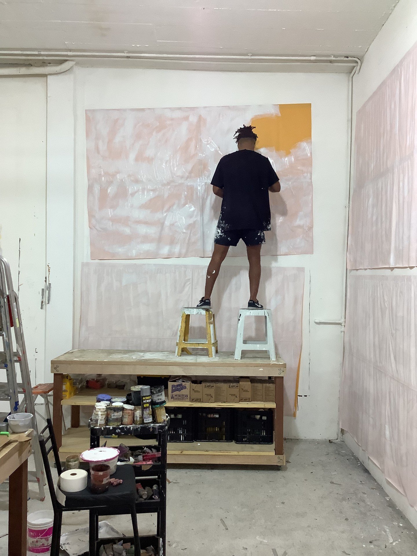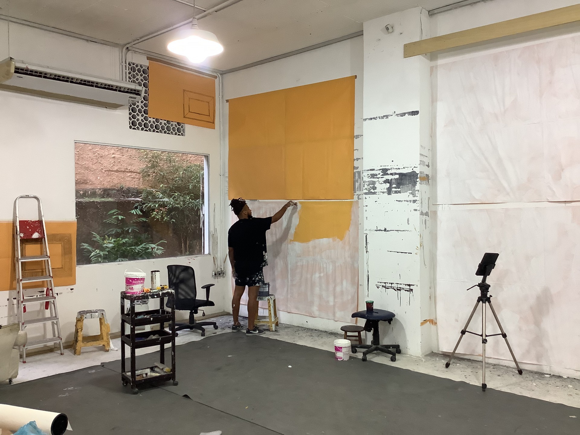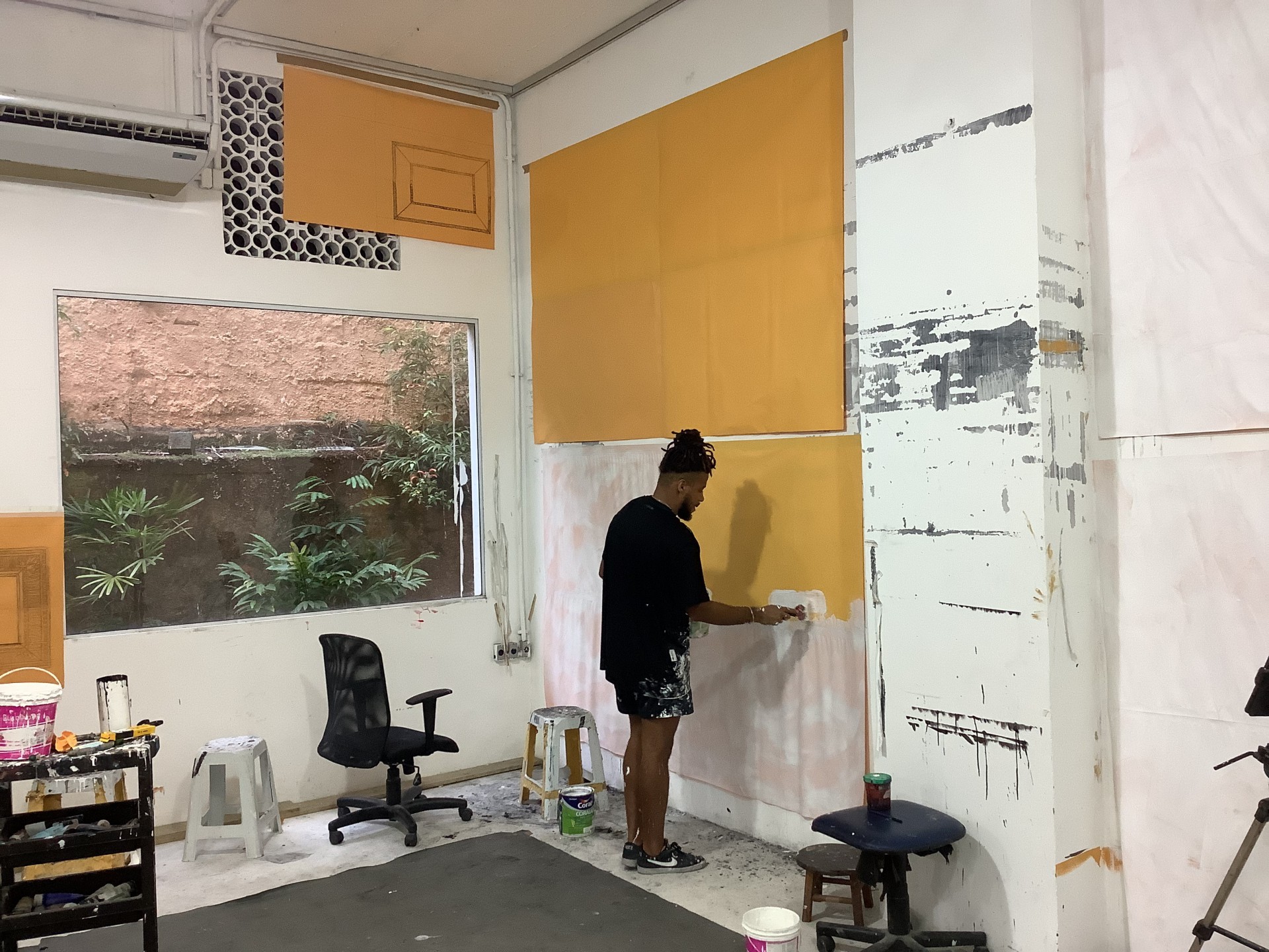 "Em certa medida, parte desse momento chegou para mim, porque meu ateliê na Rocinha ficou muito pequeno. Então precisei alugar um espaço maior, e só lá pro centro do Rio que eu pude encontrar algo generoso nesse sentido."