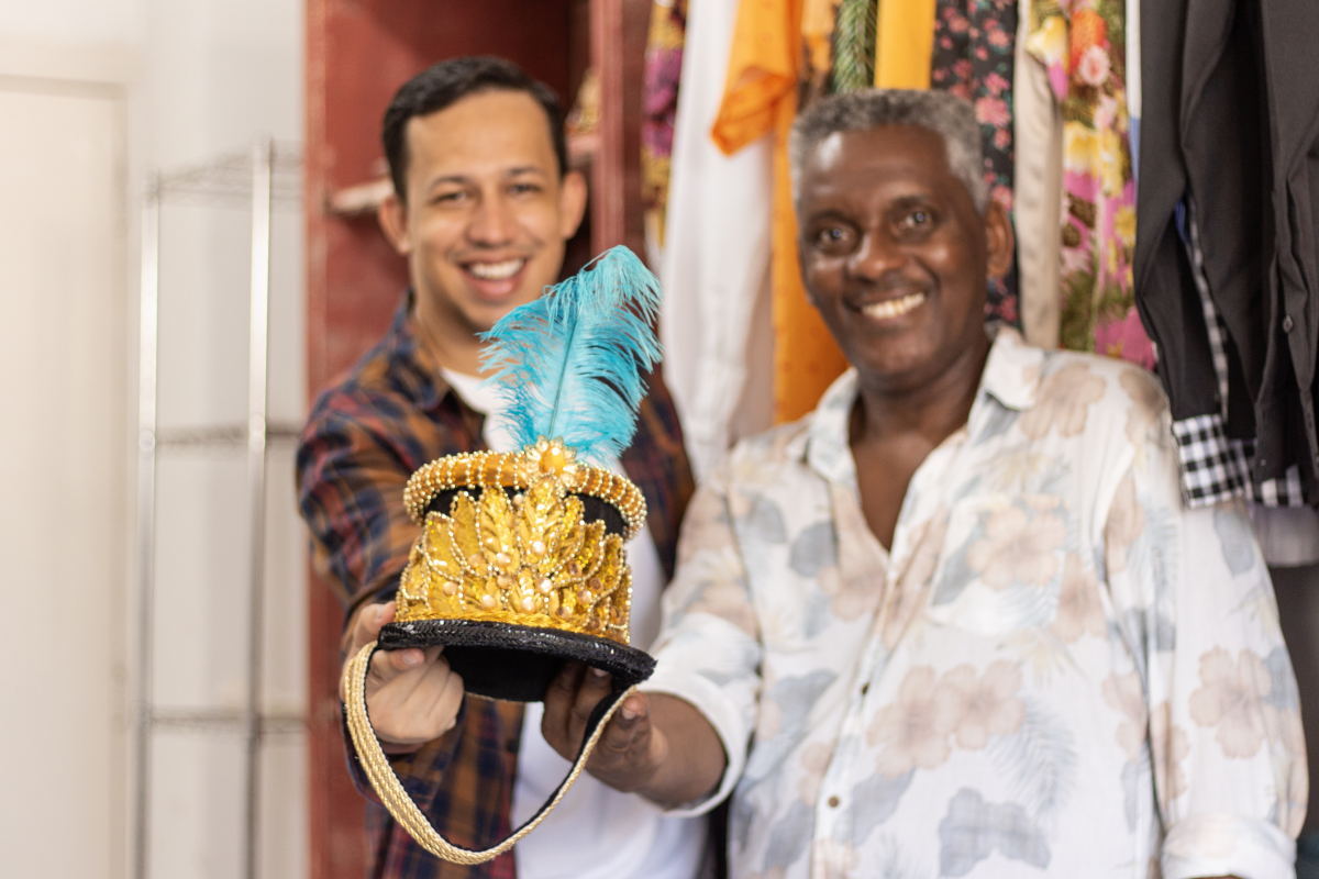 Uma brincadeira recorrente no estúdio é perguntar de onde veio o tecido. Isso remete ao Carnaval de 2018, quando Izaquis e Wallace trabalhavam diariamente em um espaço dentro do barracão na Cidade do Samba.