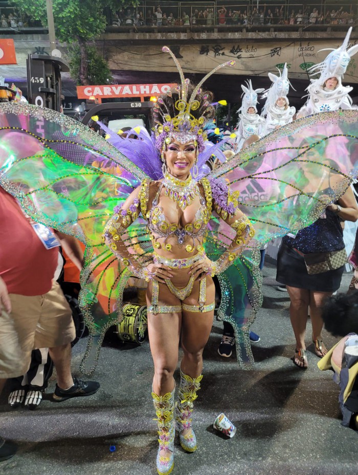 Na concentração para o desfile, a beldade também falou da dificuldade da preparação pausada em dois anos por conta da pandemia. "Foi um pouco sacrificante pra gente fazer a preparação, perdemos o costume de desfilar nesses dois anos. Mas com o tempo nos fomos recuperando e hoje é 100%", disse.