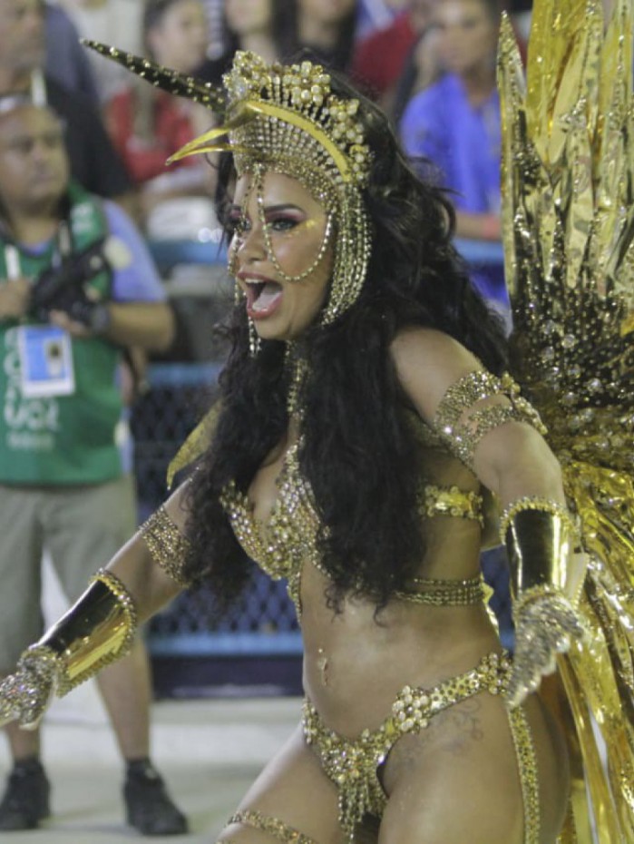"Raíssa de Oliveira, carrega a responsabilidade de ser a rainha de bateria da Beija-Flor de Nilópolis, desde os seus 12 anos, estreando no ano de 2002. Talentosa desde muito pequena foi descoberta pelo nosso eterno griô, Laíla. Fazia parte da ala de passistas mirins quando participou de um concurso para eleger a nova rainha da Escola no qual ela foi a grande vencedora. De lá pra cá, Raíssa brilhou e traçou uma linda trajetória na azul e branco. Viveu muitas histórias e fez parte de muitos títulos ao longo de todos esses anos junto da Soberana", diz a legenda da publicação.