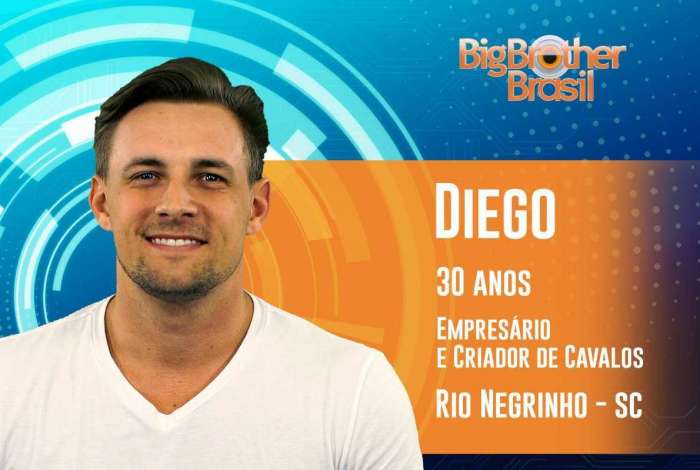 Diego é empresário e criador de cavalos desde os 19 anos. Atualmente, ele mora em Curitiba, no Paraná, com a irmã, mas é natural de Santa Catarina. Apesar de gostar de sertanejo e música eletrônica, Diego tem como símbolo sexual a cantora pop Britney Spears.