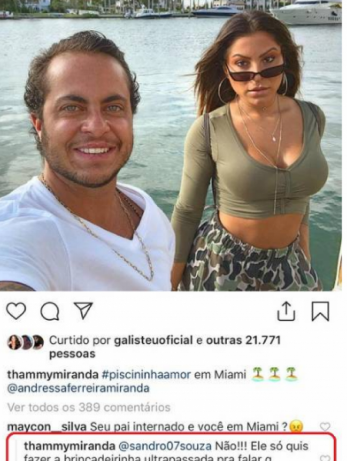 No Facebook, os internautas se surpreendem com os políticos. "Caraca, Thammy tá muito igual ao Carlos Bolsonaro", comentou um seguidor. "Vendo essa foto pensei que era o Carlos Bolsonaro", escreveu outro. "Thammy tá A CARA do Carlos Bolsonaro", postou mais um.