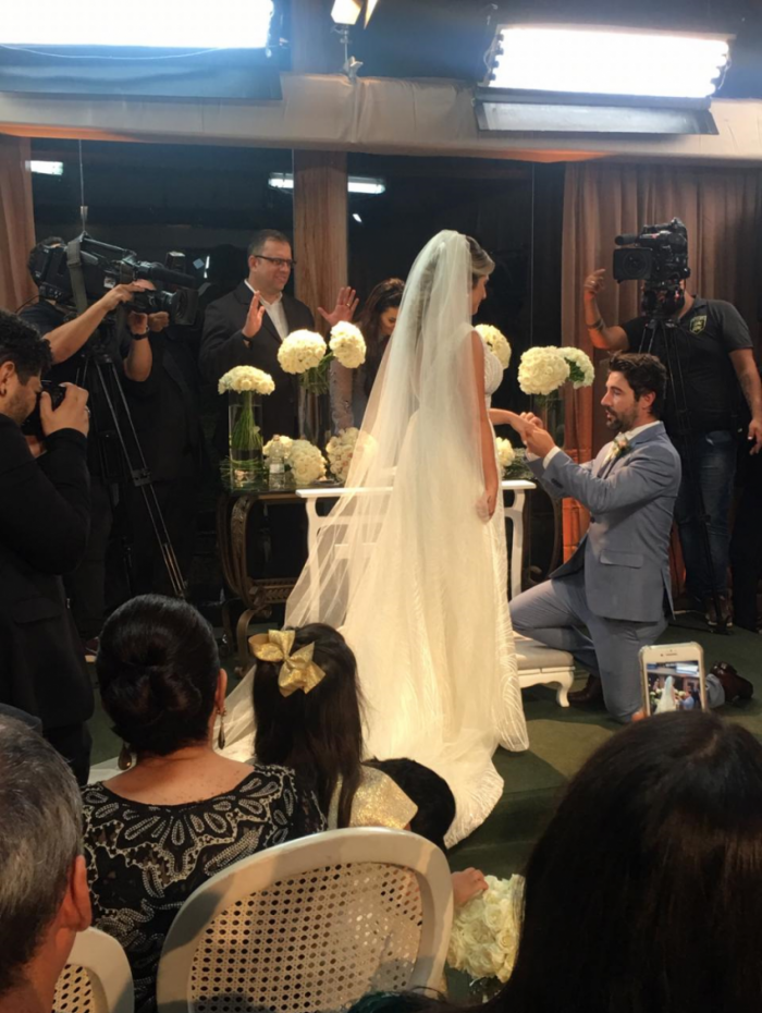 Jéssica Costa, filha do cantor Leonardo, se casou com Sandro Pedroso, na noite desta segunda-feira. Entretanto, o pai não esteve presente na cerimônia, que aconteceu em Goiás. A noiva entraria sozinha até que Sandro decidiu conduzi-la até o altar.