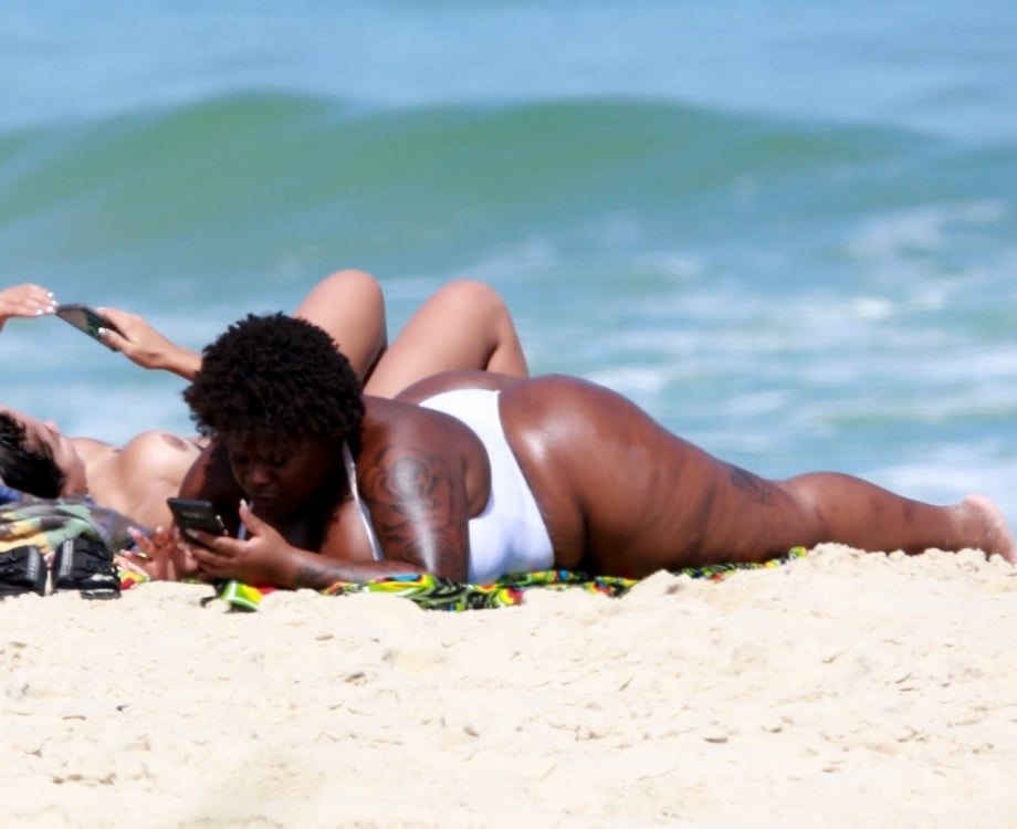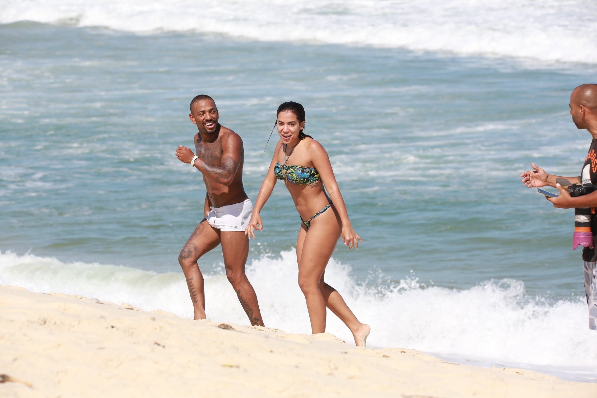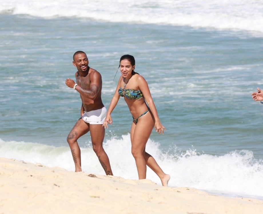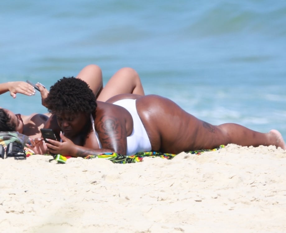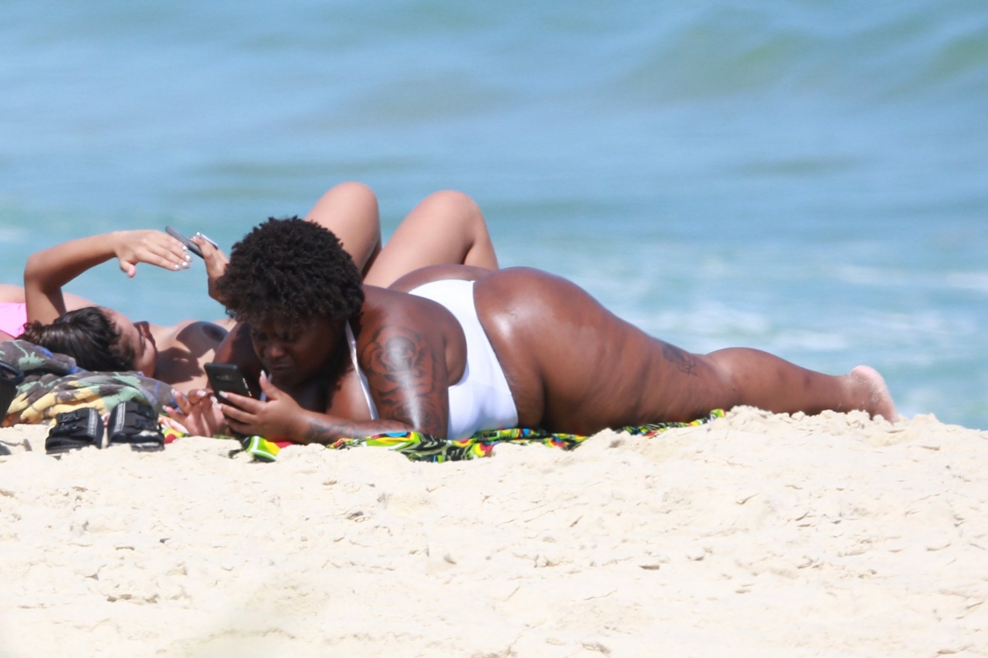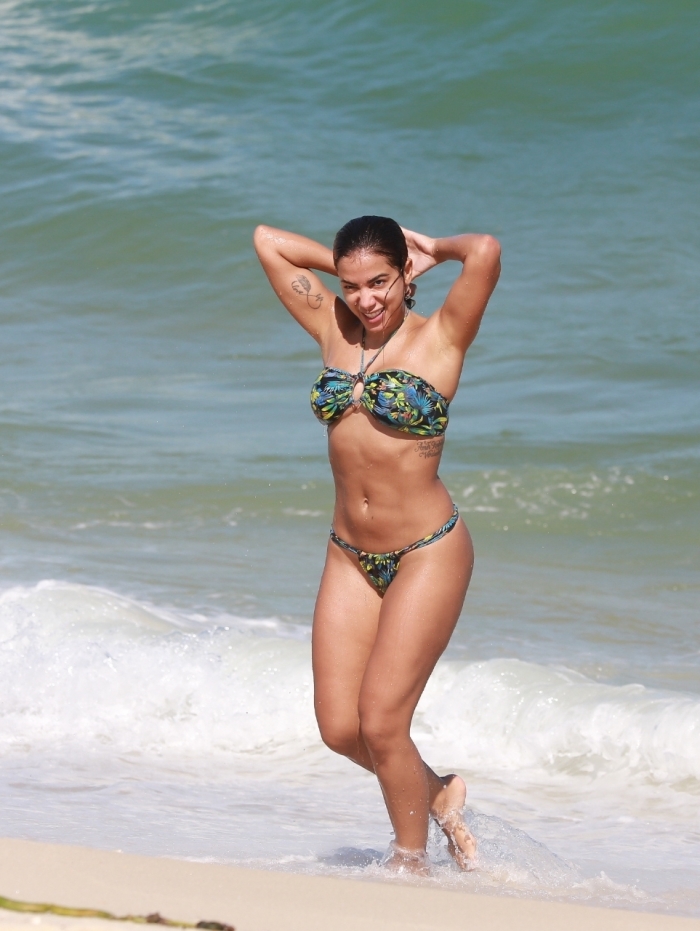 Anitta aproveitou o dia de sol que fez ontem para pegar uma praia. A cantora foi à Praia da Barra da Tijuca, na Zona Oeste do Rio, acompanhada de amigos, entre eles Jojo Todynho e Nego do Borel. Com um biquininho fio-dental, a Poderosa mostrou seu corpão em forma, renovou o bronzeado e mergulhou no mar.
