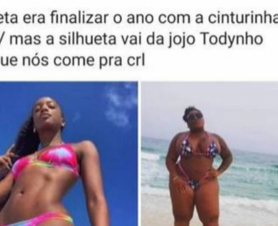 O meme era uma comparação maldosa entre os corpos de Iza e Jojo Todynho. As duas artistas aparecem lado a lado de biquíni, com a frase: “A meta era finalizar o ano com a cinturinha da Iza, mas a silhueta vai da Jojo Todynho”.