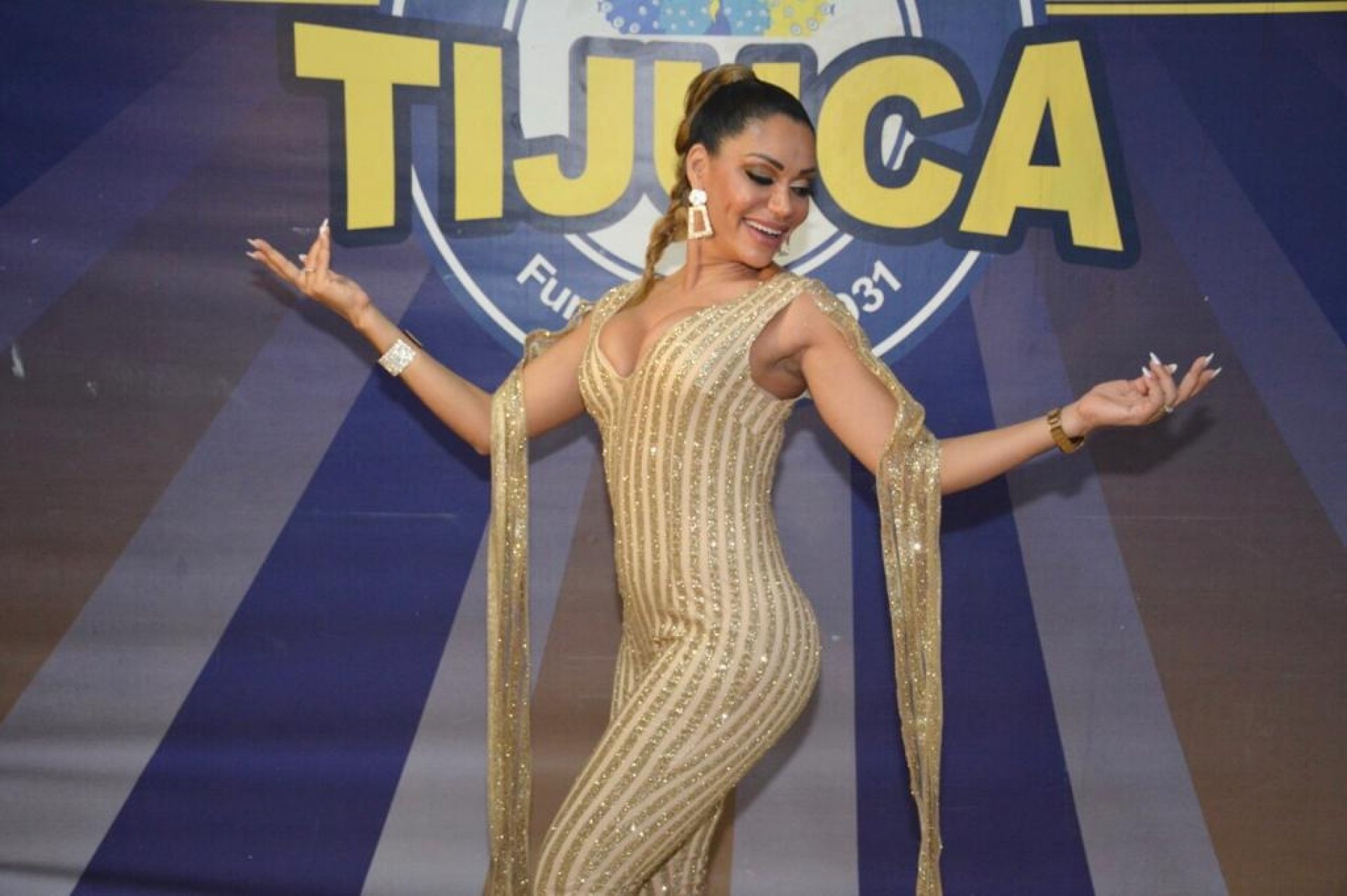 A musa da Unidos da Tijuca Ana Paula Evangelista brilhou na noite de ensaio na quadra da escola. A modelo aproveitou o momento e revelou alguns detalhes sobre a fantasia que irá vestir na Sapucaí.