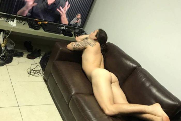 O humorista Whindersson Nunes resolveu ficar bem à vontade para assistir a entrevista que o youtuber Felipe Neto deu ao “ Roda Vida ”, da TV Cultura , na última segunda-feira (18). Totalmente nu, o ex-marido de Luísa Sonza apareceu deitado no sofá com o bumbum para cima enquanto olhava para a televisão.