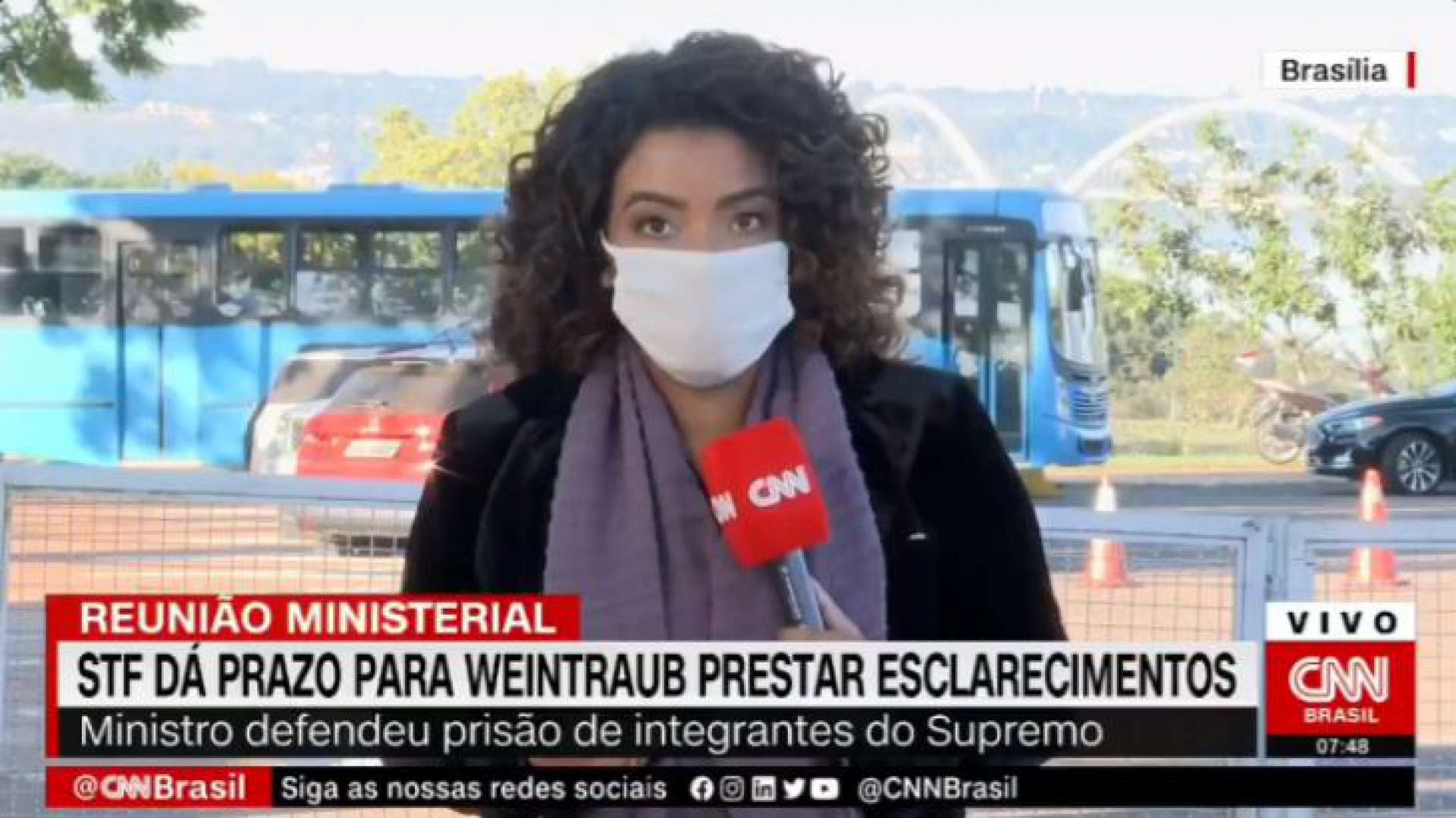 A repórter falava sobre decisão do ministro Alexandre de Moraes, do STF, de determinar o depoimento do ministro da Educação, Abraham Weintraub, que tem prazo de cinco dias para ser ouvido pela Polícia Federal sobre o vídeo da reunião ministerial do dia 22 de abril em que disse que colocaria todos na prisão, "começando pelo STF".Na ocorrência, um homem gritou atrás da repórter: "Abraham Weintraub tem razão!". Ele estava em um balsão destinado a apoiadores de Bolsonaro, que é separado apenas por uma grade do lugar onde fica a imprensa.