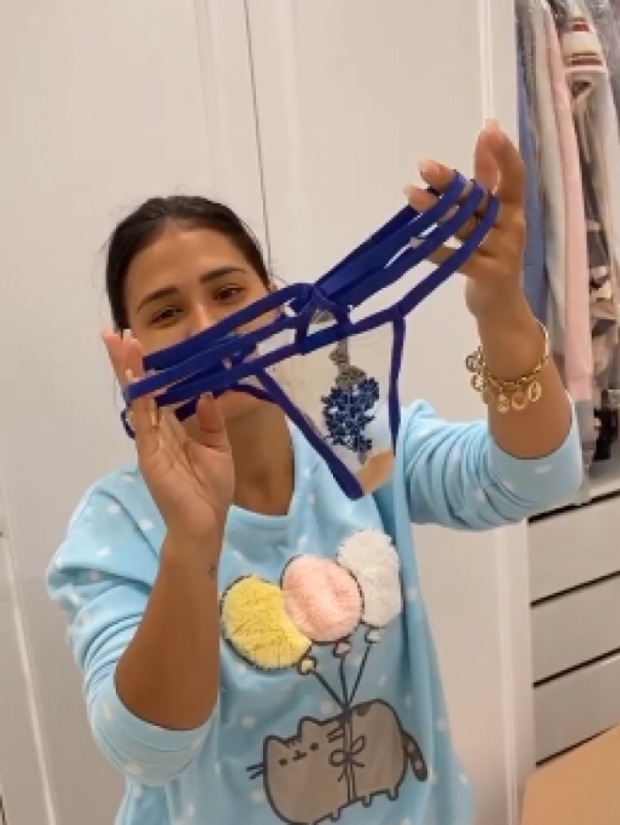 Simone ainda mostrou uma segunda lingerie inusitada e admitiu aos risos nunca ter usado. "Não dá tempo, né amor? Na hora de usar eu arranco de uma vez. Você sabe que eu vou com o dente", comentou o marido sobre essa segunda peça.