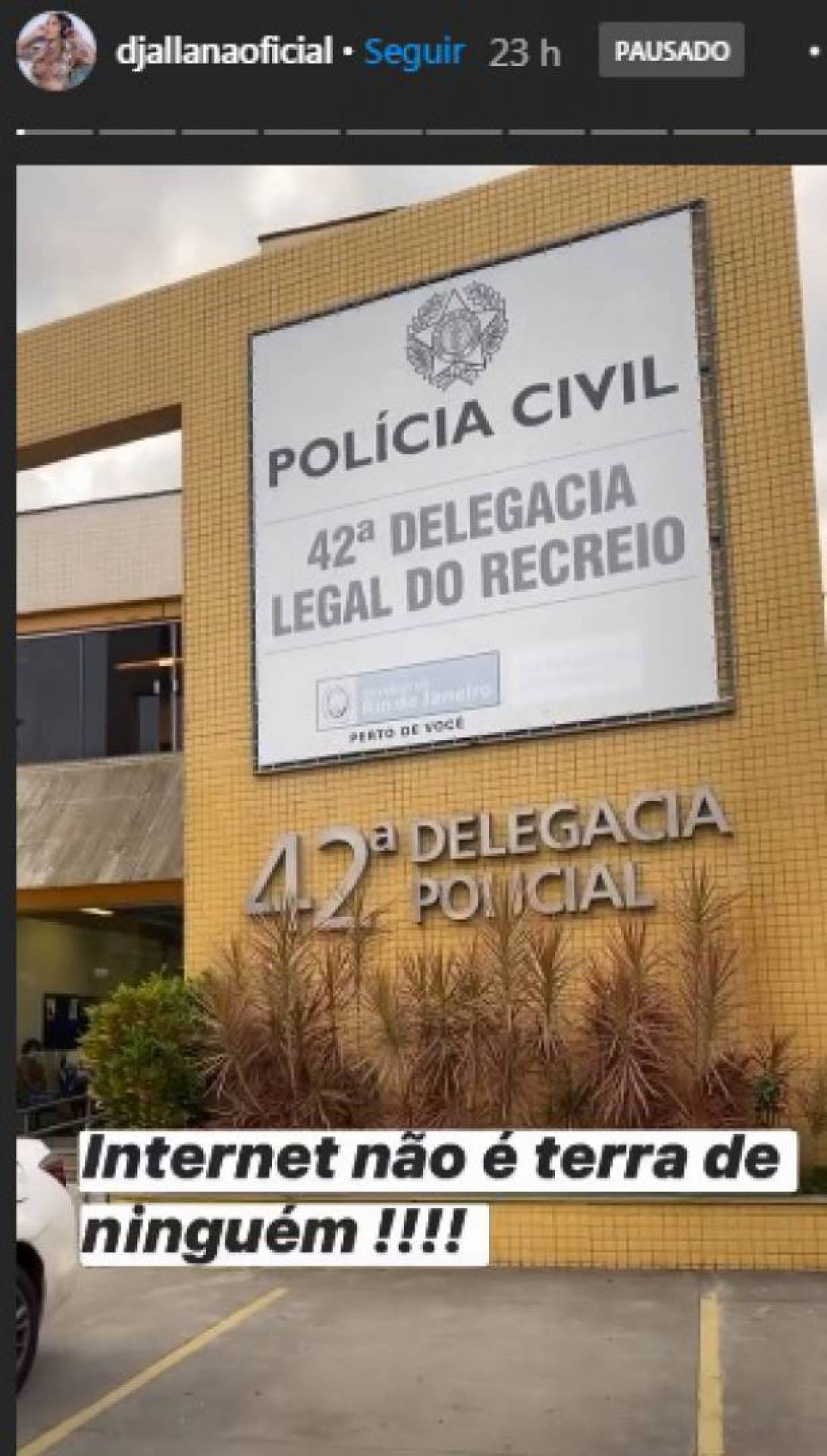 Nas redes sociais, Allana publicou uma foto em frente à delegacia, com a legenda: "Internet não é terra de ninguém!".