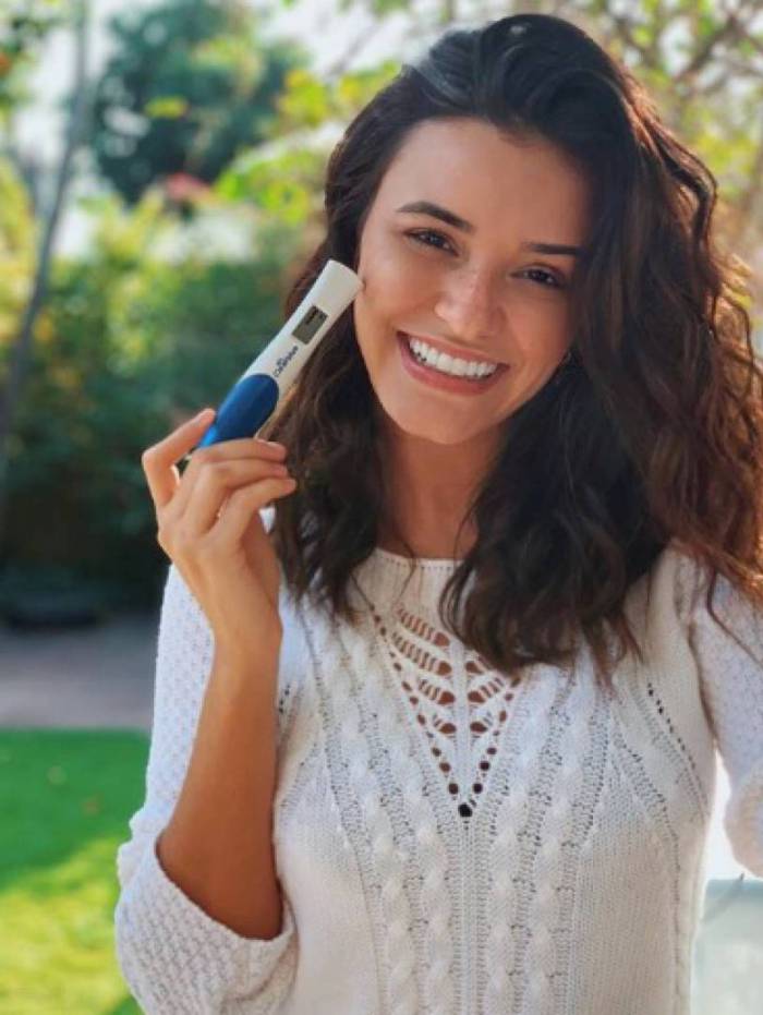 "Somos 2 corações batendo dentro desse corpinho e 2 corações perdidamente apaixonados pelo papai @joaogomez ! Obrigada por ser minha família. Obrigada por cuidar de mim. Já estou emocionada!", escreveu a moça que não perdeu a oportunidade de fazer um merchan de uma marca de testes de gravidez.