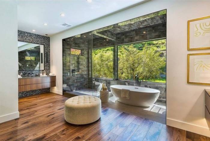 Com 878 metros quadrados, a casa tem uma estrutura imponente como banheiro revestido de mármore, bar molhado, cozinha ao ar livre, suítes, academia, piscina e uma decoração recheada de obras de arte, como uma escultura rara de uma ovelha. No total, são seis quartos e oito banheiros. Veja imagens: