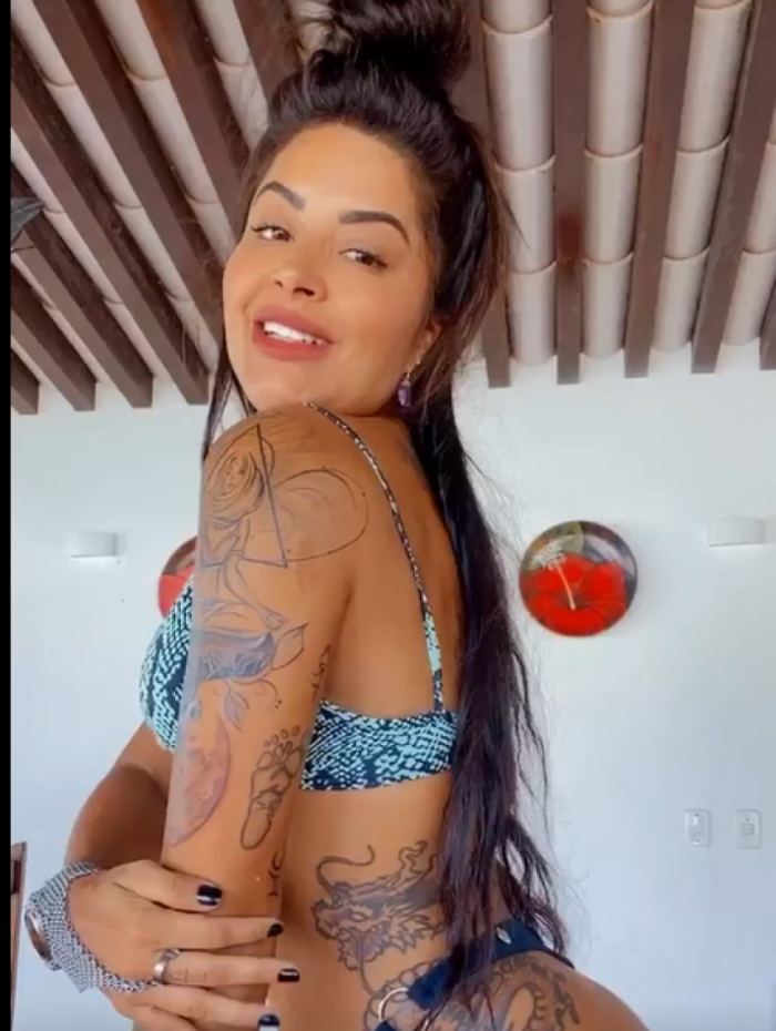 Aline Riscado fez novas tatuagens no corpo e foi compartilhar os desenhos com seus seguidores no Instagram neste sábado (19). E quem disse que os fãs reparam! Os comentários e elogios foram como sempre para a boa forma da moça exibida em um biquíni cavadão. 'Musa das galáxias', escreveu uma internauta. "Essa mulher é uma perfeição", completou um segundo seguidor.