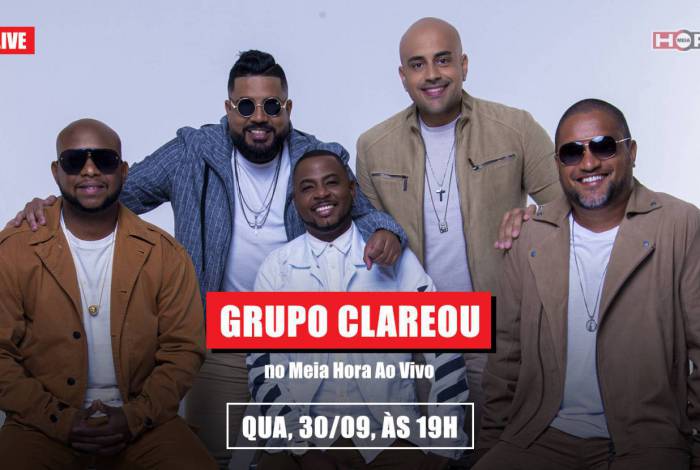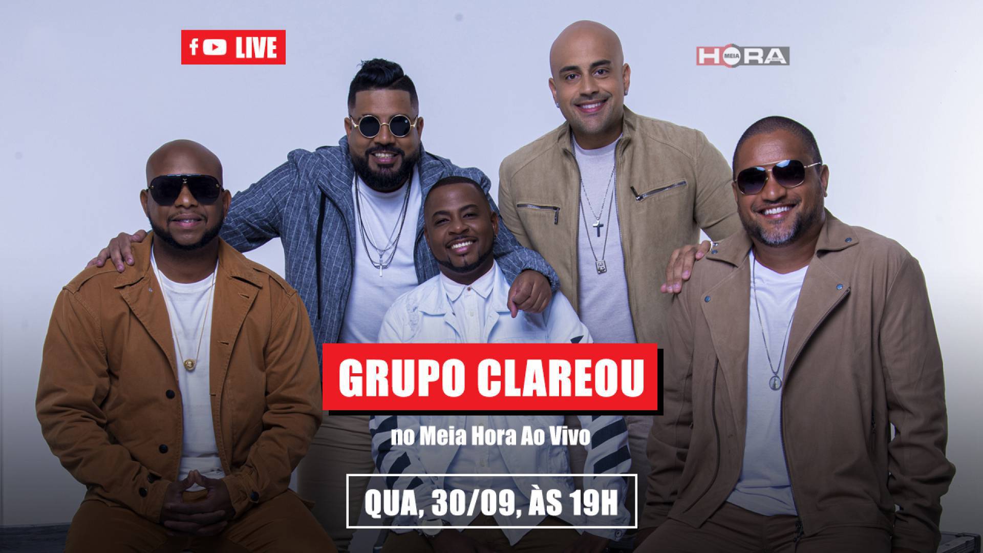 O jornal Meia Hora realizará uma entrevista ao vivo com o grupo de pagode Clareou nesta quarta-feira, 30, às 19h. Desta vez, excepcionalmente, no Facebook e no Youtube do jornal. Com 10 anos de estrada, o grupo coleciona mais de 260 mil inscritos no canal do Youtube e meio milhão de seguidores no Instagram. Entre os hits do grupo estão “Valeu Pra Aprender”, com quase 10 milhões de visualizações , e “Dona Dos Meus Sonhos”, com mais de 4 milhões. E você é o nosso convidado desse encontro: envie sua pergunta e ative a notificação para não esquecer!