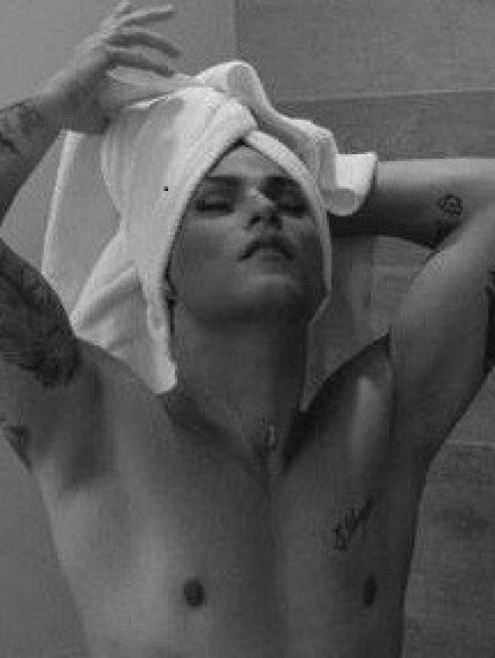 Bruno Gagliasso publicou uma foto sem roupa em sua conta do Instagram a pedido de um fã.Na foto em preto e branco, o ator aparece com uma toalha na cabeça e a caixinha de perguntas cobrindo as partes íntimas.