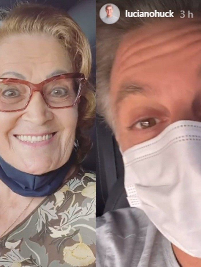Rio - Luciano Huck foi o responsável por levar sua sogra, Angelina Ksyvicks, mãe da apresentadora Angélica, para tomar a vacina contra a covid-19. Eles estiveram no posto drive-thru do Parque Olímpico, na Zona Oeste do Rio, onde Angelina foi imunizada. "Hoje é dia da vacina. Dia de tomar vacina!", comemorou a mãe de Angélica.