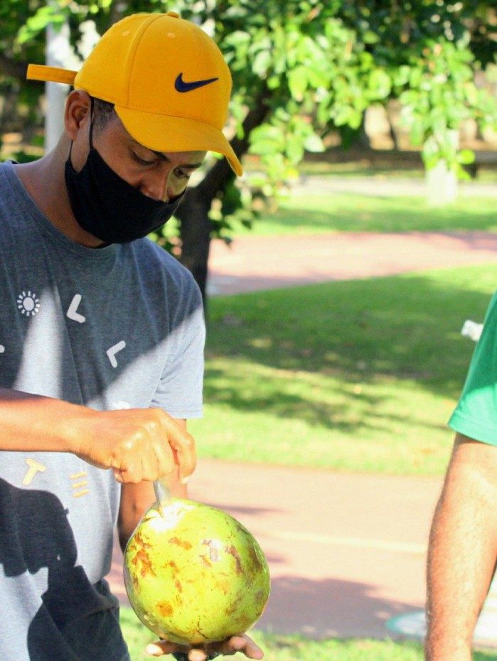 Rio - O ex-BBB Luan Patrício, que participou da 15ª edição do "Big Brother Brasil", foi fotografado vendendo água de coco na Lagoa Rodrigo de Freitas, na Zona Sul do Rio, na manhã desta segunda-feira. Além de vender água de coco, Luan também administra um pula-pula ao ar livre nos finais de semana.