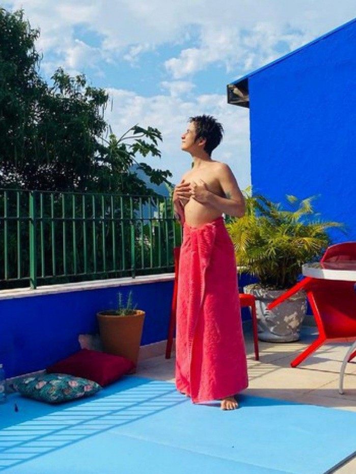 Nanda Costa usou o seu perfil oficial do Instagram para compartilhar uma foto da esposa, a percussionista e compositora Lan Lanh, fazendo topless enquanto toma banho de sol. Na postagem , a atriz ainda se declarou à amada.
