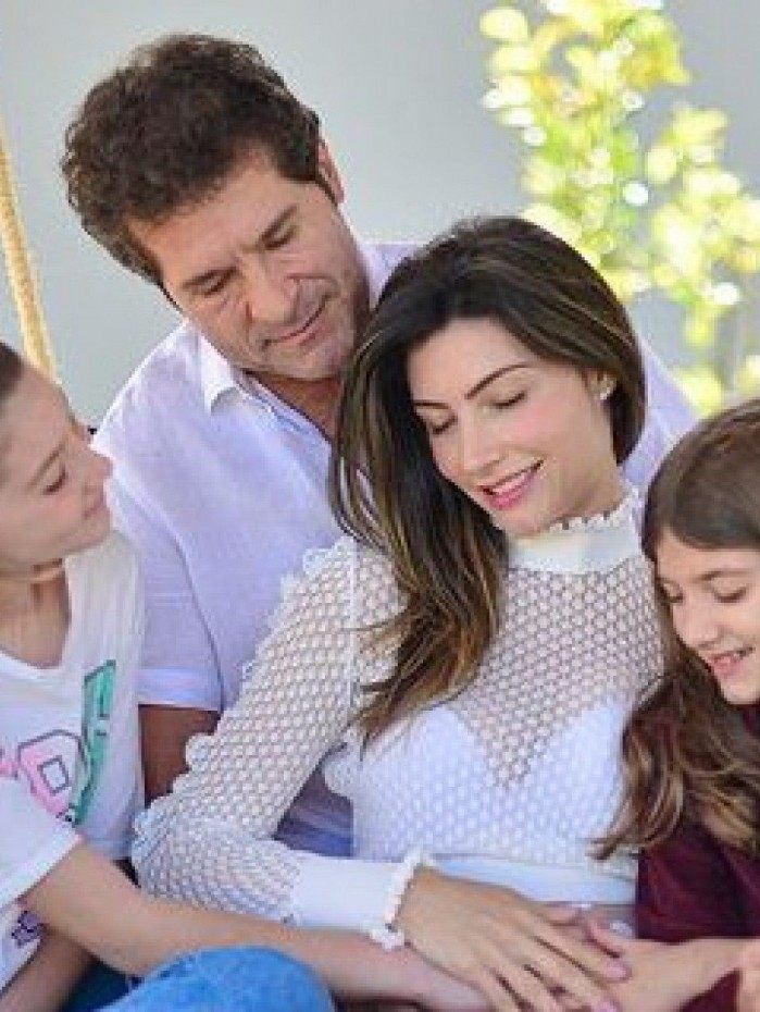 "Queremos dividir esse momento tão especial com todos vocês! A família vai aumentar!", anunciou o cantor na legenda das fotos em que ele e as filhas, Lara e Luiza, aparecem com as mãos sobre a barriga da matriarca.
