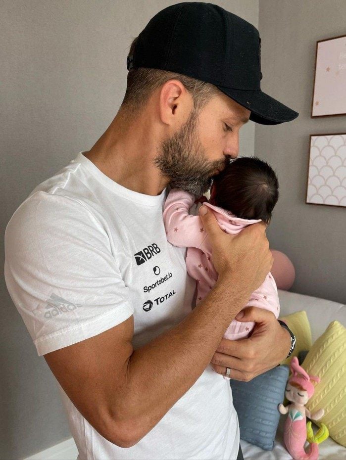 Rio - Diego Ribas compartilhou, neste sábado, um momento fofo ao lado da filha Letícia, que nasceu na última quarta-feira. Com a pequena no colo, o jogador do Flamengo posou dando um beijinho na cabeça da filha e se despedindo. "De volta ao jogo para a alegria ser completa! Até logo, princesinha", escreveu o atleta na legenda.