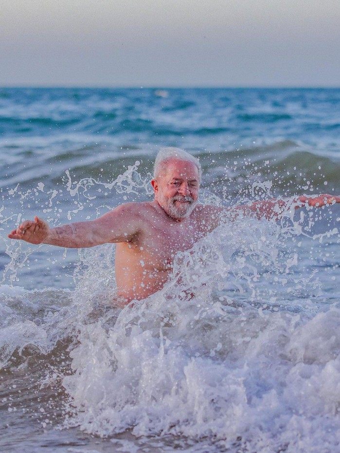 Rio - O assunto da semana foi, sem dúvidas, o físico do ex-presidente Lula. Aos 75 anos, o petista chamou atenção pelas coxas definidas ao posar de sunga ao lado da namorada Janja. E mais uma vez, Lula voltou a ser assunto nas redes sociais, mas dessa vez ao compartilhar uma foto sem camisa durante um banho de mar.