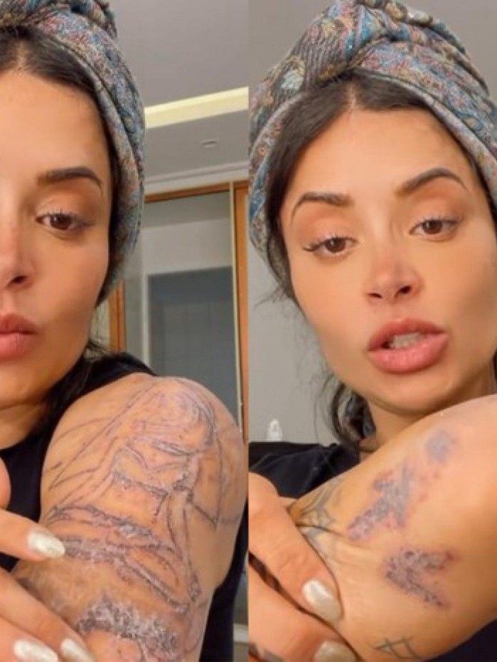 "Sei que muitas pessoas estão vivendo o processo de apagar uma tatuagem que não faz mais sentido. Estou tirando tudo isso aqui. Olha como fica feio", disse ela, enquanto mostrava o braço nos Stories do Instagram. "É um processo chato, doloroso e tem que ter muita paciência porque o intervalo entre uma sessão e outra tem que ser grande, tem que cuidar muito bem e não pode pegar sol. Todos esses fatores interferem na cicatrização e regeneração da pele", explicou.
