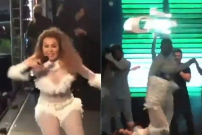 Joelma se desequilibra e cai durante sho...