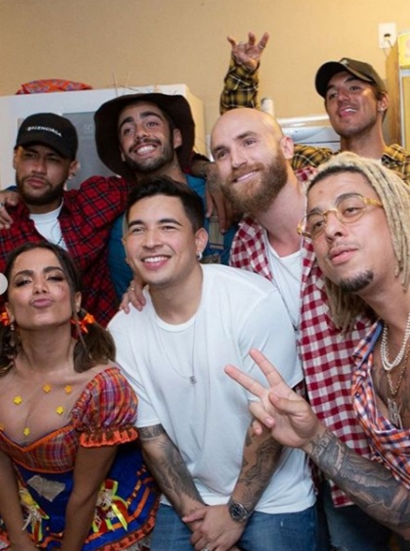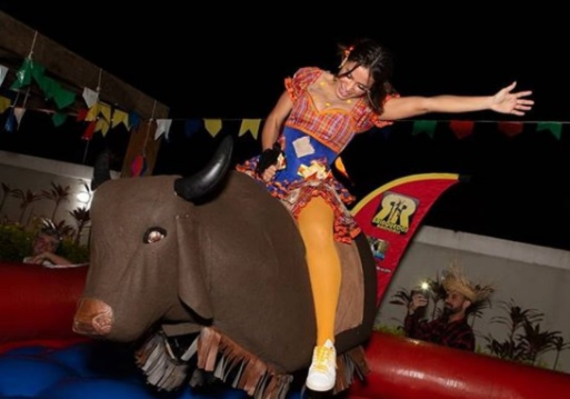 Anitta abriu as portas de sua mansão na Barra da Tijuca para promover um verdadeiro 'arraiá' junino, que começou na noite de terça-feira e só terminou na madrugada de ontem. Provando que o relacionamento com Pedro Scooby vai muito bem — obrigada —, a Poderoso posou vestida a caráter ao lado do bonitão, trocando beijos (1). Entre os famosos que se esbaldaram estavam a funkeira Jojo Todynho (3), que dançou muito ao lado de Mauro Machado, pai da cantora; a atriz Fernanda Paes Leme; o ator Eri Johnson, que foi o padre da quadrilha; a apresentadora Luisa Mell; o blogueiro Hugo Gloss e o maquiador Renner Souza. A mansão foi toda decorada para a ocasião, com direito a tradicional Barraca do Beijo e touro mecânico. Anitta se jogou na brincadeira (4). Mas nada chamou mais atenção na festa do que a presença de Neymar e Gabriel Medina (2), antigos 'crushes' da Poderosa. O quarteto não demonstrou nenhum tipo de constrangimento em vídeos publicados nas redes sociais. Uma das mais animadas, a anfitriã da noite se jogou na quadrilha e se divertiu com amigos e parentes.