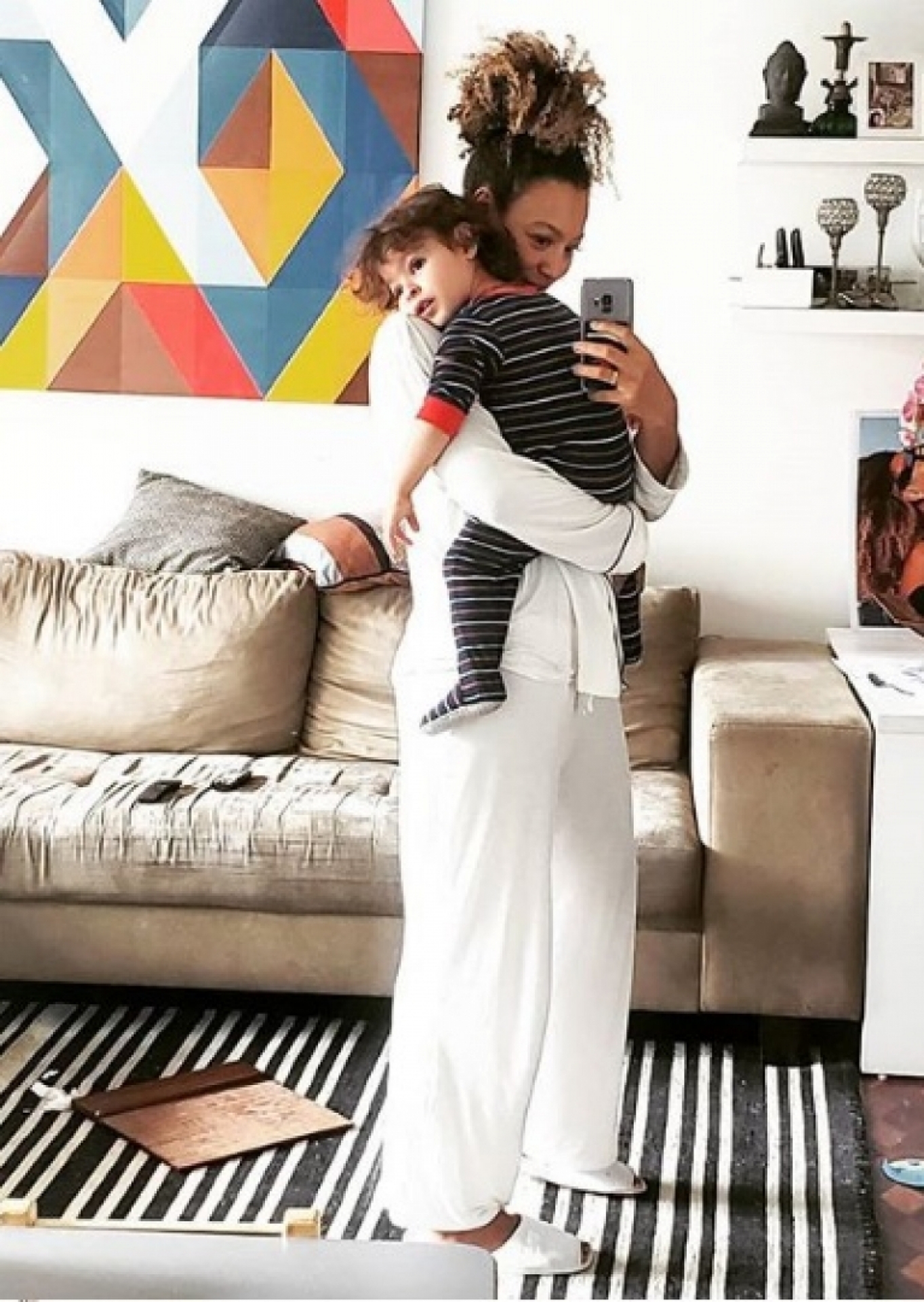 Deliciosa! Eu sou mãe raiz, de casa mesmo. Não tenho babá, por opção, mas conto com uma rede de apoio muito importante: minha mãe, sogra e, claro, o papai dele (Saulo Bernard). É uma força-tarefa. Queria viver intensamente essa maternidade. Eu sou uma mãe controladora, chilete. Extremamente grudenta. Eu quero ter mais filho, mas agora não. Ainda não durmo direito. Preciso, primeiro, voltar a dormir.