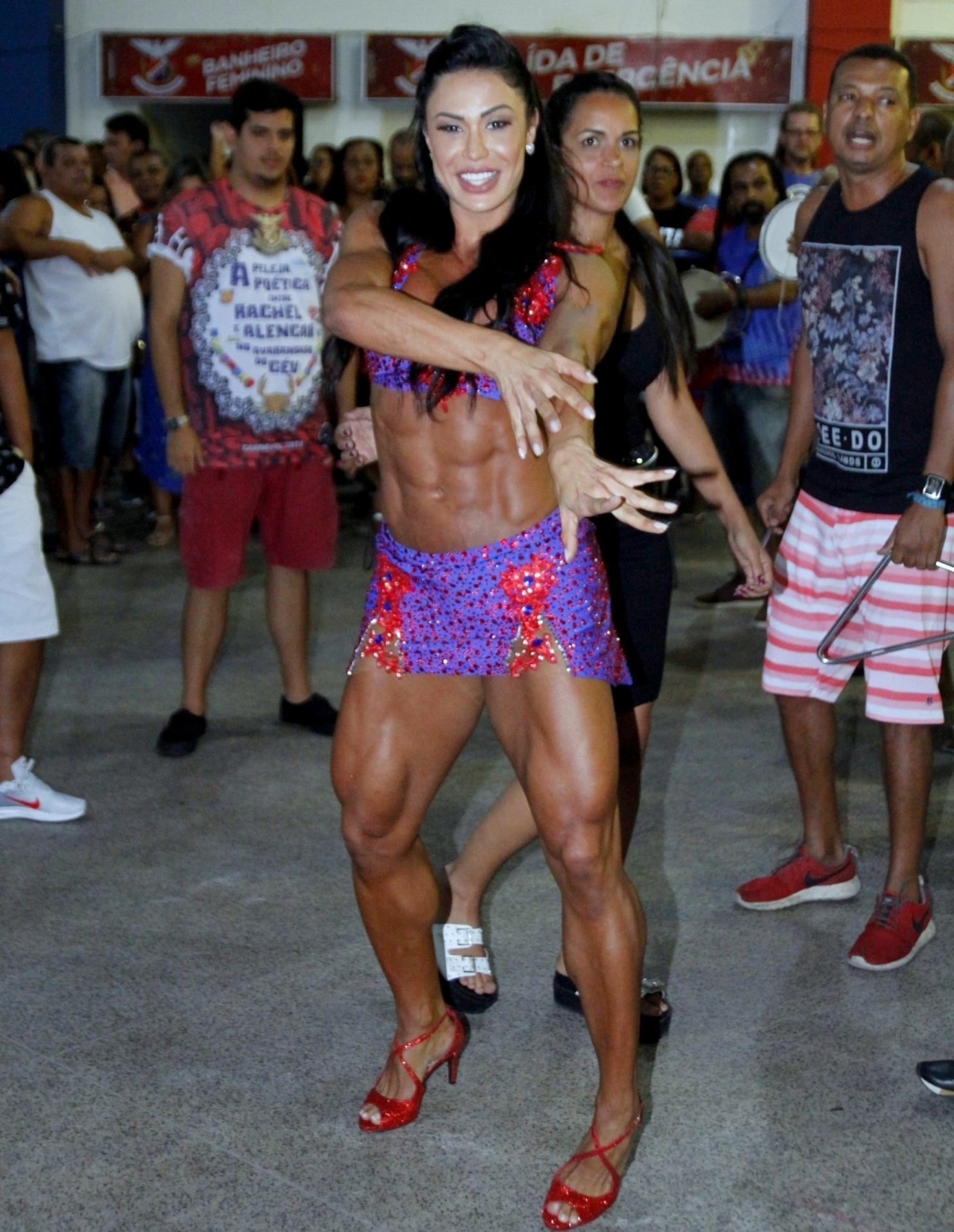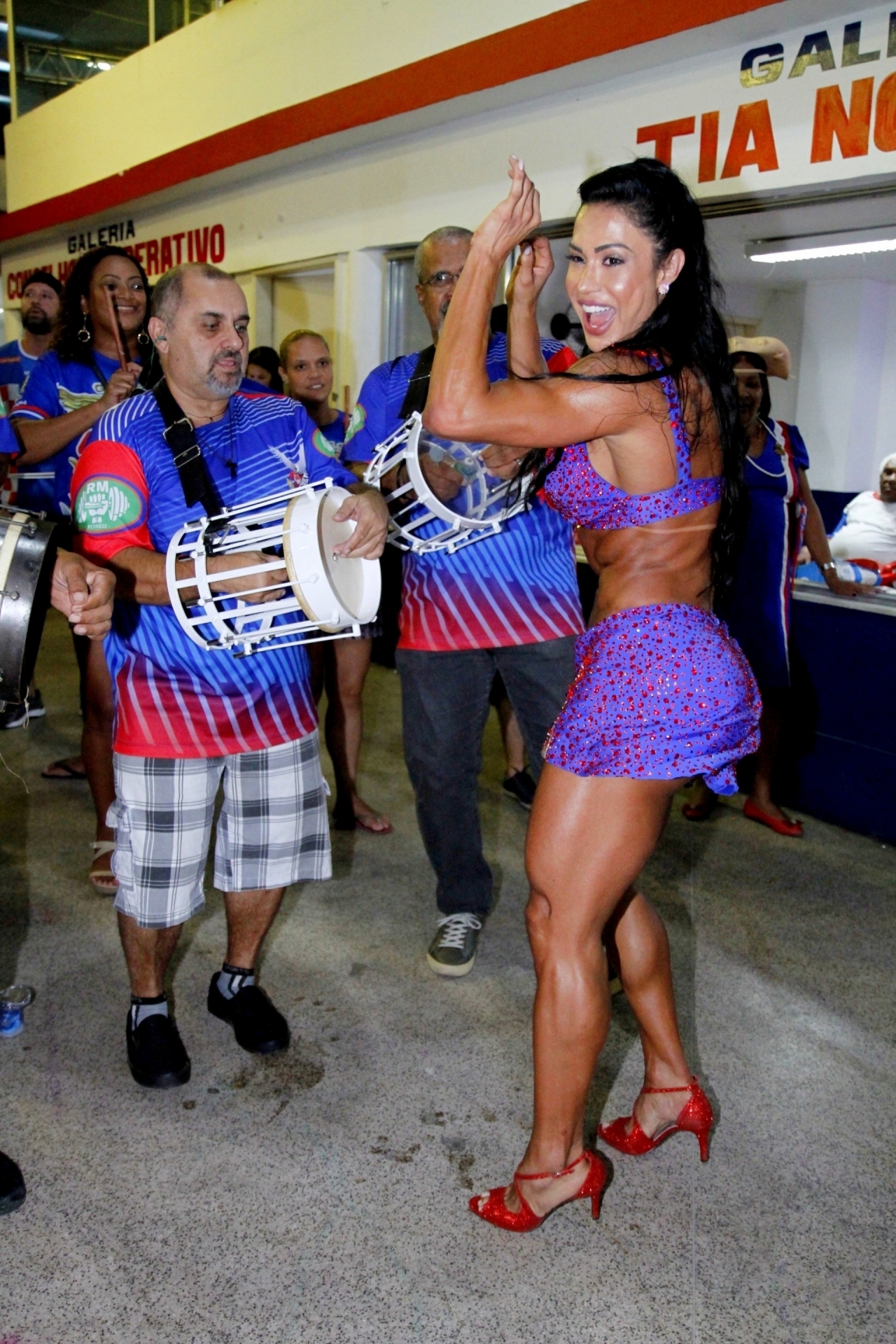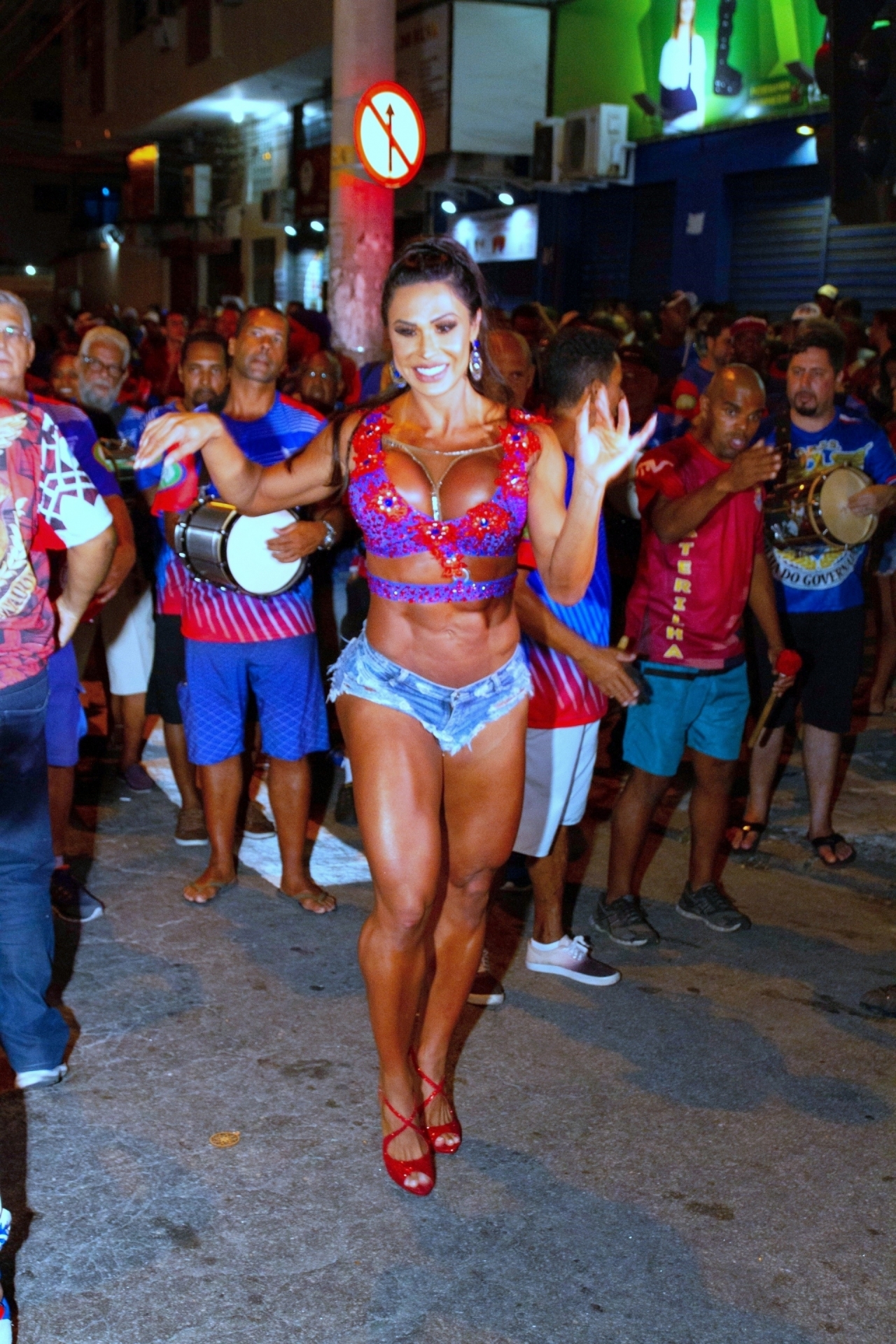 Cuido do corpo o ano inteiro, é a minha forma de cuidar da saúde. Para o Carnaval, eu reforço treinos com foco para me ajudar no pique, pois passo pouco mais de uma hora sambando.