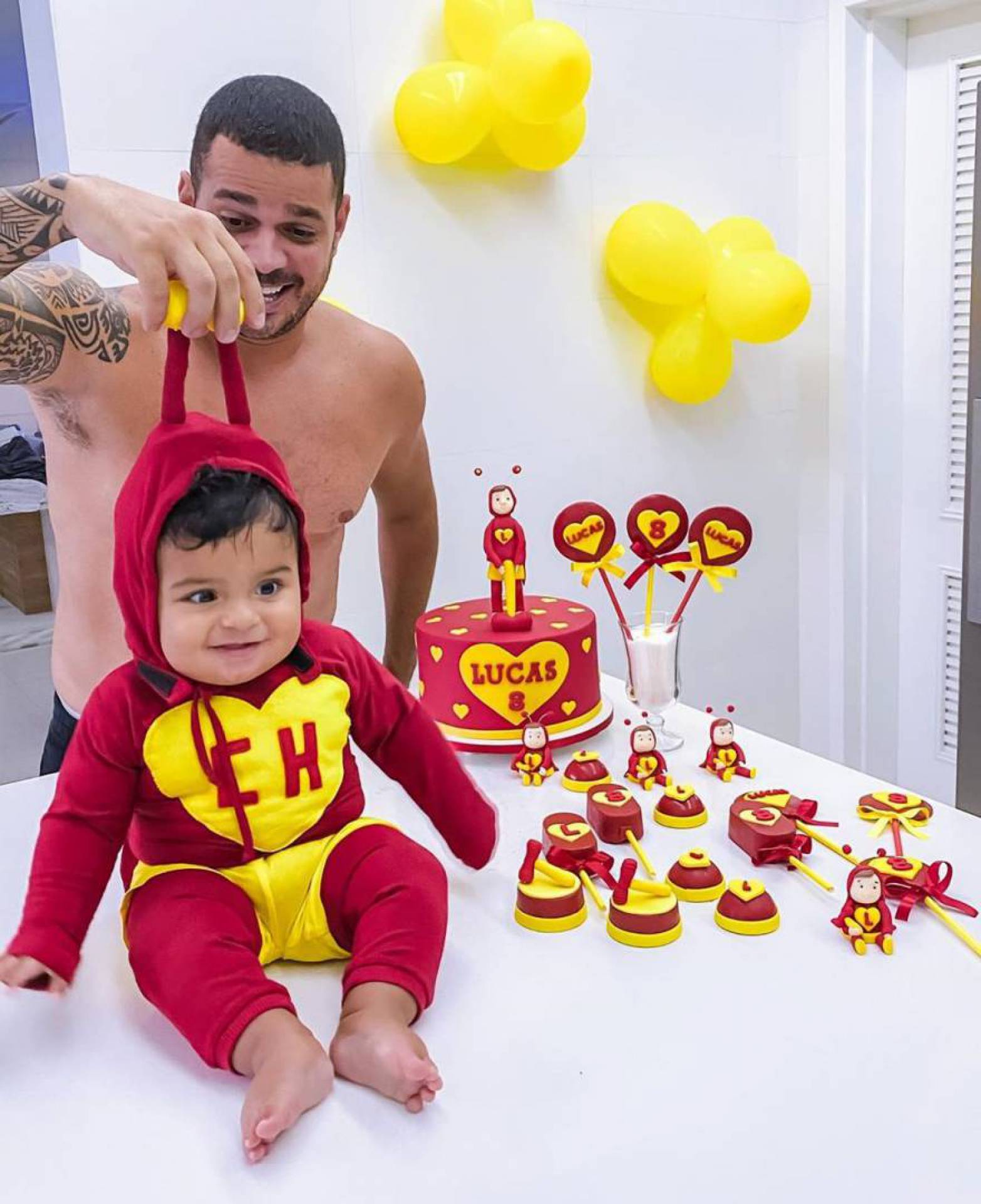 “Estamos sempre tentando nos divertir nos mêsversários do Lukitos. Dessa vez, nos vestimos dos nossos personagens favoritos. Com a quarentena, que não podemos reunir toda a nossa a família, queremos inovar para nos distrairmos entre nós mesmos e, principalmente, comemorar a data. É sempre uma festa para nós”, conta Evelyn.