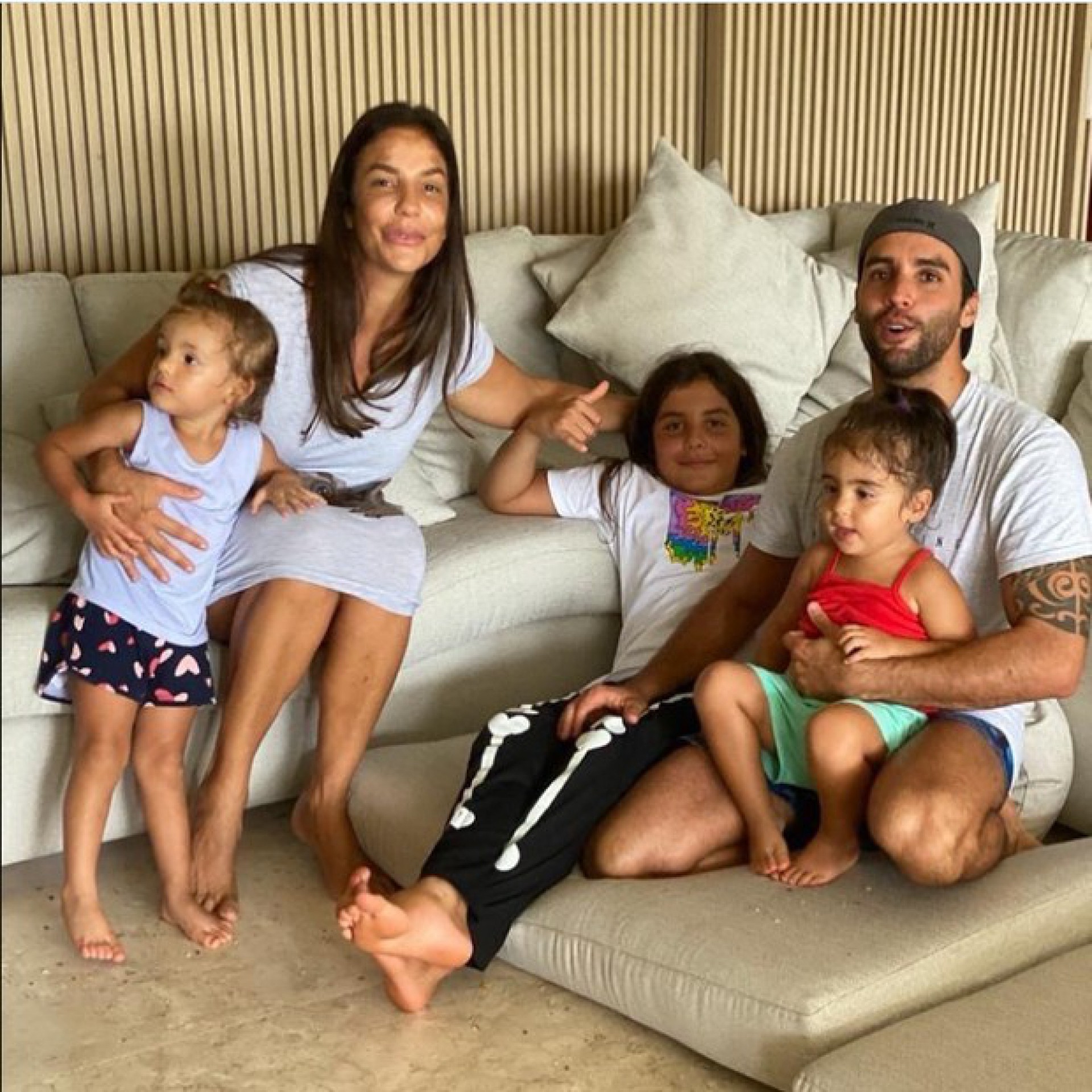 Ivete Sangalo celebrou o aniversário de 35 anos do marido, o nutricionista Daniel Cady, em um lindo clique do casal ao lado dos três filhos Marcelo, de 10 anos, e as gêmeas Helena e Marina, de 2. No melhor estilo quarentena, a família aparece bem à vontade no sofá de casa. "Meu par! Não somos metades um do outro. Somos inteiros e nos entregamos totalmente. Nosso mundo é gigante! Te amo todo", escreveu Veveta.