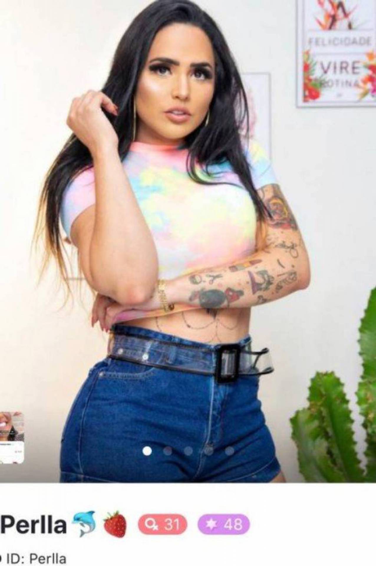 Na série de imagens, Perlla pode ser vista com roupas diferentes, deixando escapar da camisa parte dos seios, além de filtros divertidos no rosto. Ela nega que tenha vendido nudes ou que fique exibindo seu corpo na plataforma. No perfil dela no aplicativo Bigo, é possível ver quanto cada fã manda de beans (moeda da rede) para ela. Somente um seguidor, autodenominado Anjo Godoy, enviou 137.088 "beans" para a artista. O que equivale a cerca de 653 dólares (quase R$ 3,5 mil).
