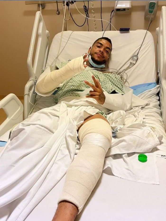 Após sofrer um acidente de carro, MC Kevin surgiu com o braço e a perna engessados em um vídeo publicado por ele, no Instagram, nesta sexta-feira. Na gravação, o cantor, que está internado no Hospital Vitória, em São Paulo, tranquilizou seus fãs.