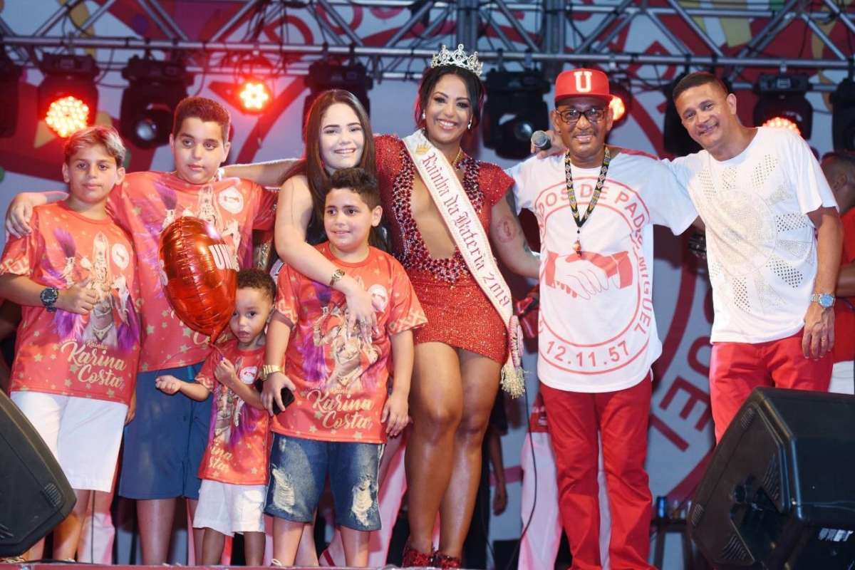 Karina Costa retomou seu reinado à frente da bateria da Unidos de Padre Miguel em um evento na quadra da escola, no domingo. A coroação ocorreu na festa de aniversário de 61 anos da agremiação. "Eu me sinto muito honrada e agradecida por receber o carinho de todos. Amo a minha comunidade. O sentimento de retorno é o melhor do mundo. A minha volta me fez ver que nunca mais devo abandonar o cargo", disse.