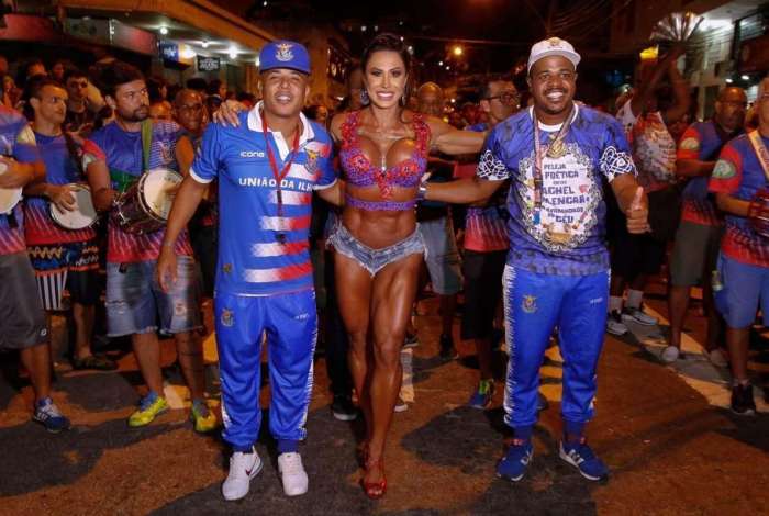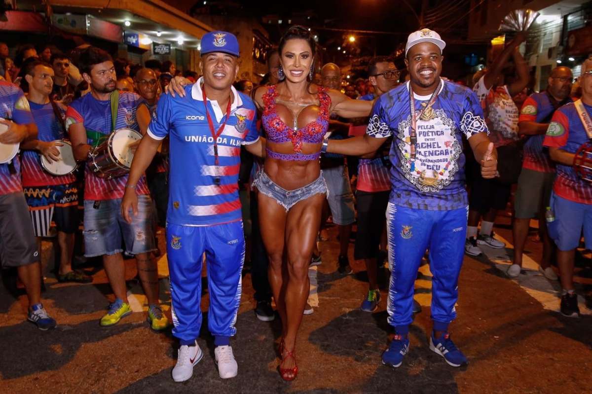 Gracyanne Barbosa participou na noite de ontem do ensaio de de rua da União da Ilha do Governador, escola da qual é rainha de bateria - Leo Cordeiro/Divulgação