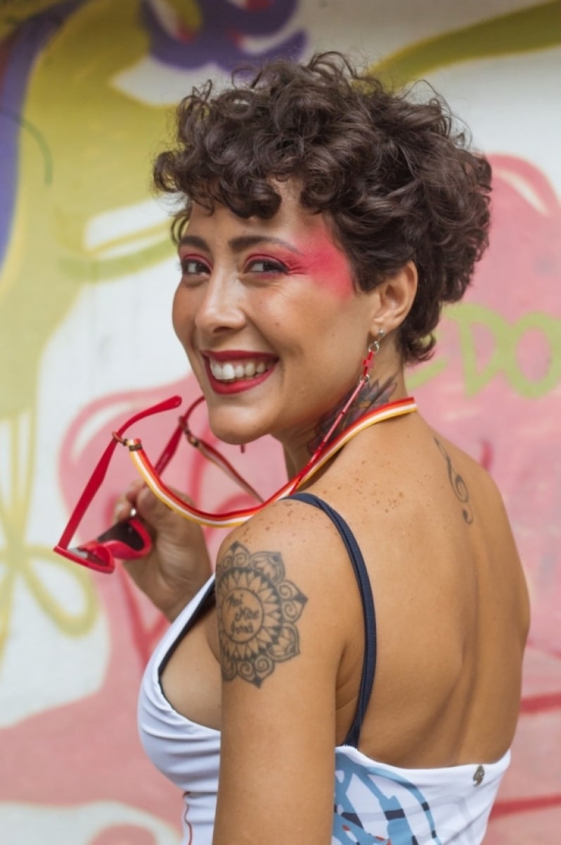 A cantora Roberta Espinosa participou de ensaio fotográfico para a loja RIOetc. E 'emprestou' sua pele para exibir a coleção de tatuagens temporárias e acessórios da marca. Ela conta que, no verão, aposta nos maiôs e complementa o look com acessórios.