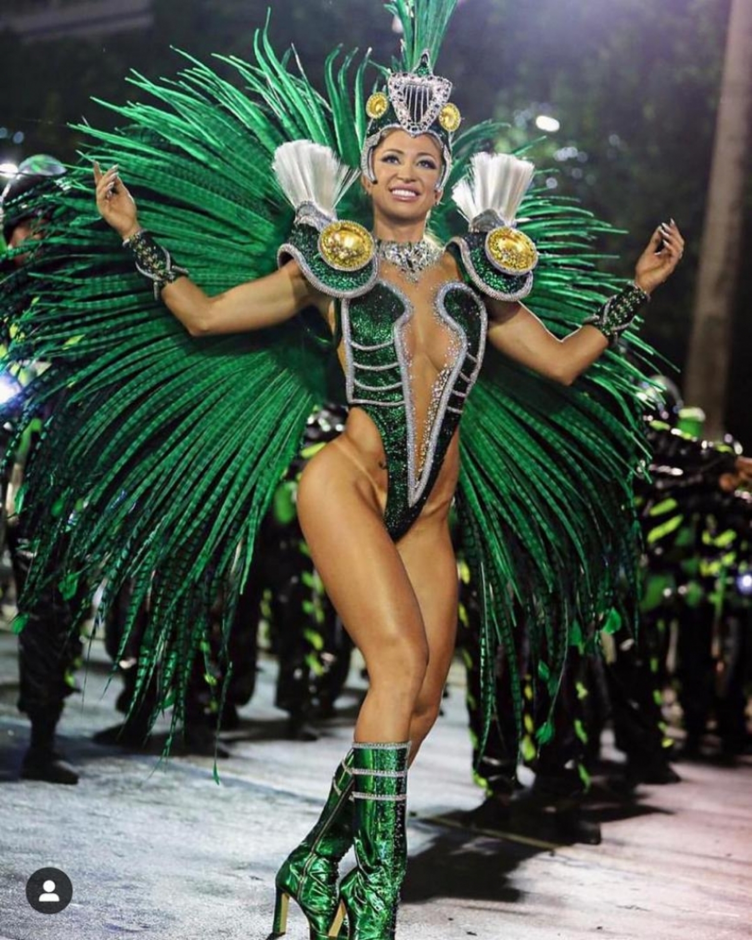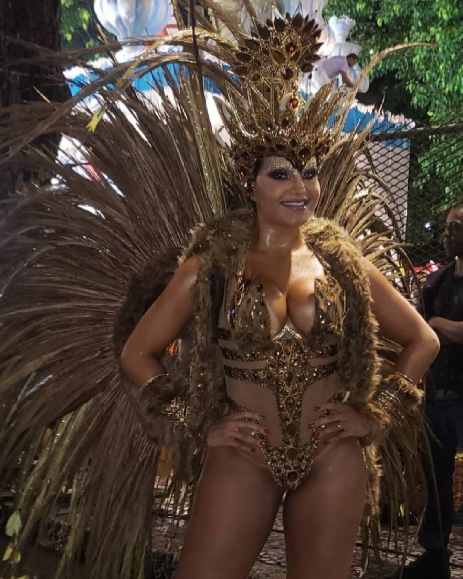 Jessica Rodrigues também veio pela Grande Rio com um fio dental abusado e assinado também por Bruno César.