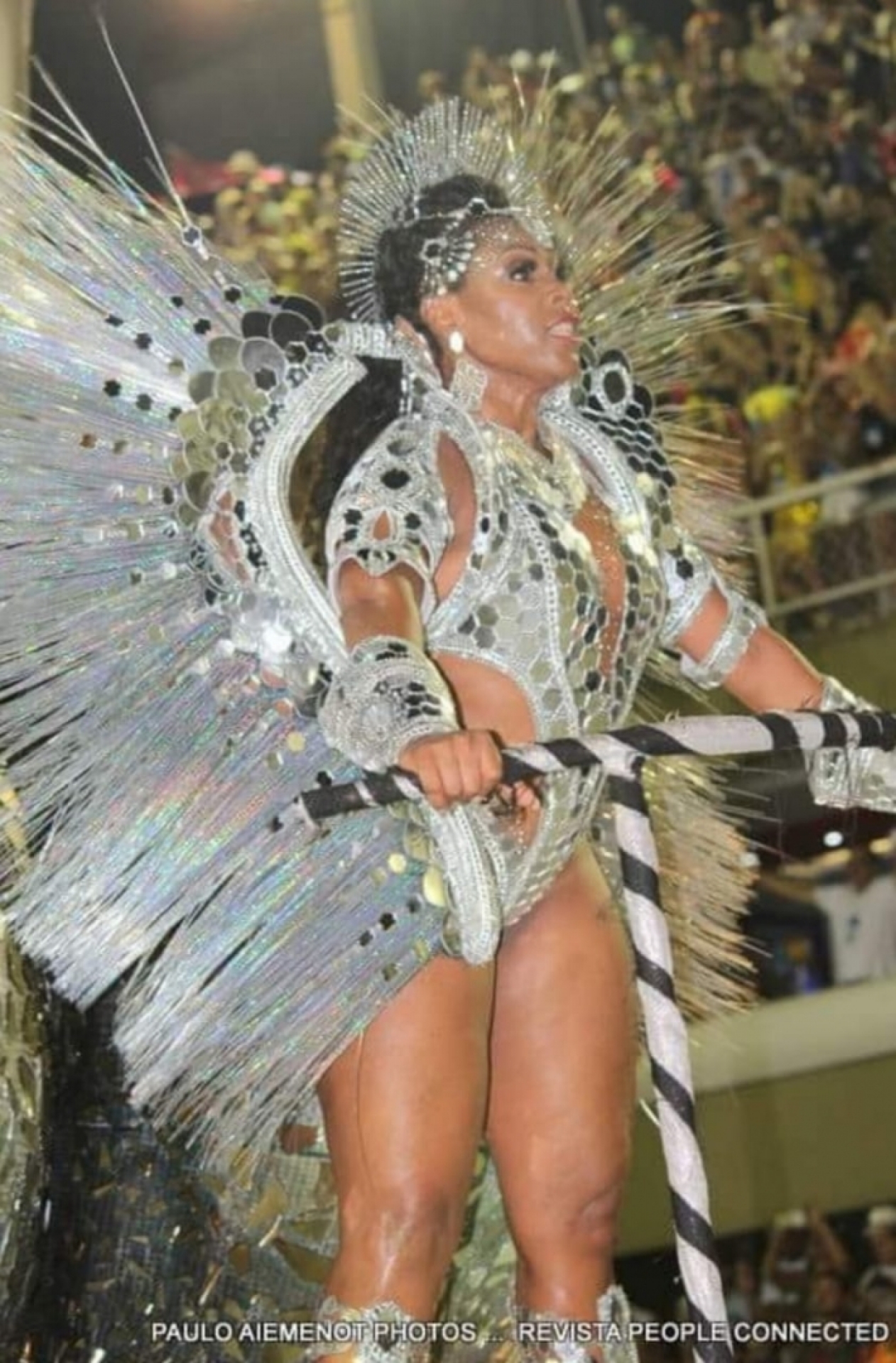 Elaine Caetano da Renascer de Jacarepaguá teve sua fantasia pensada por Guilherme Alves, mas a produção ficou por conta do Atelier Luiz Viana.