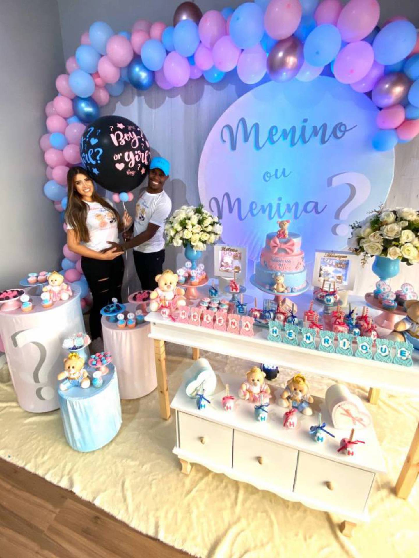 "Kekel imaginou um menino. A nossa família inteira veio vestida de azul e apenas quatro amigos de rosa", contou. Para descobrir o sexo do bebê, a surpresa foi através do escapamento do carro, que soltou fumaça rosa.