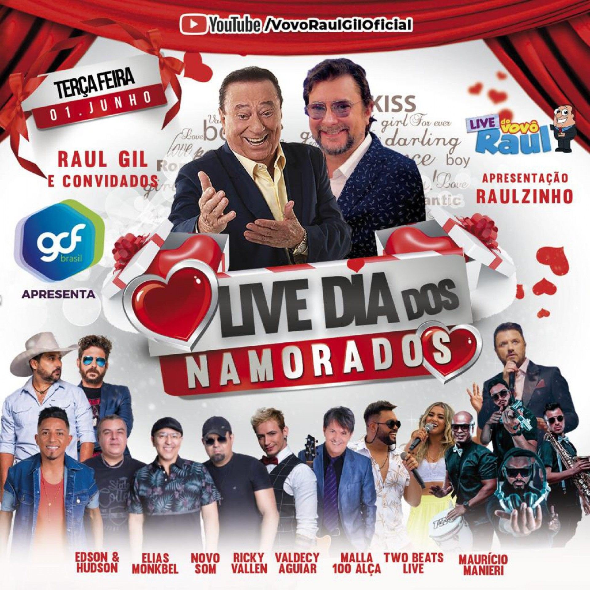 Tá aí uma boa para os que querem antecipar as comemorações. Então não perca! É hoje 01 de junho, às 18h no Canal do Vovô Raul Gil Oficial.
