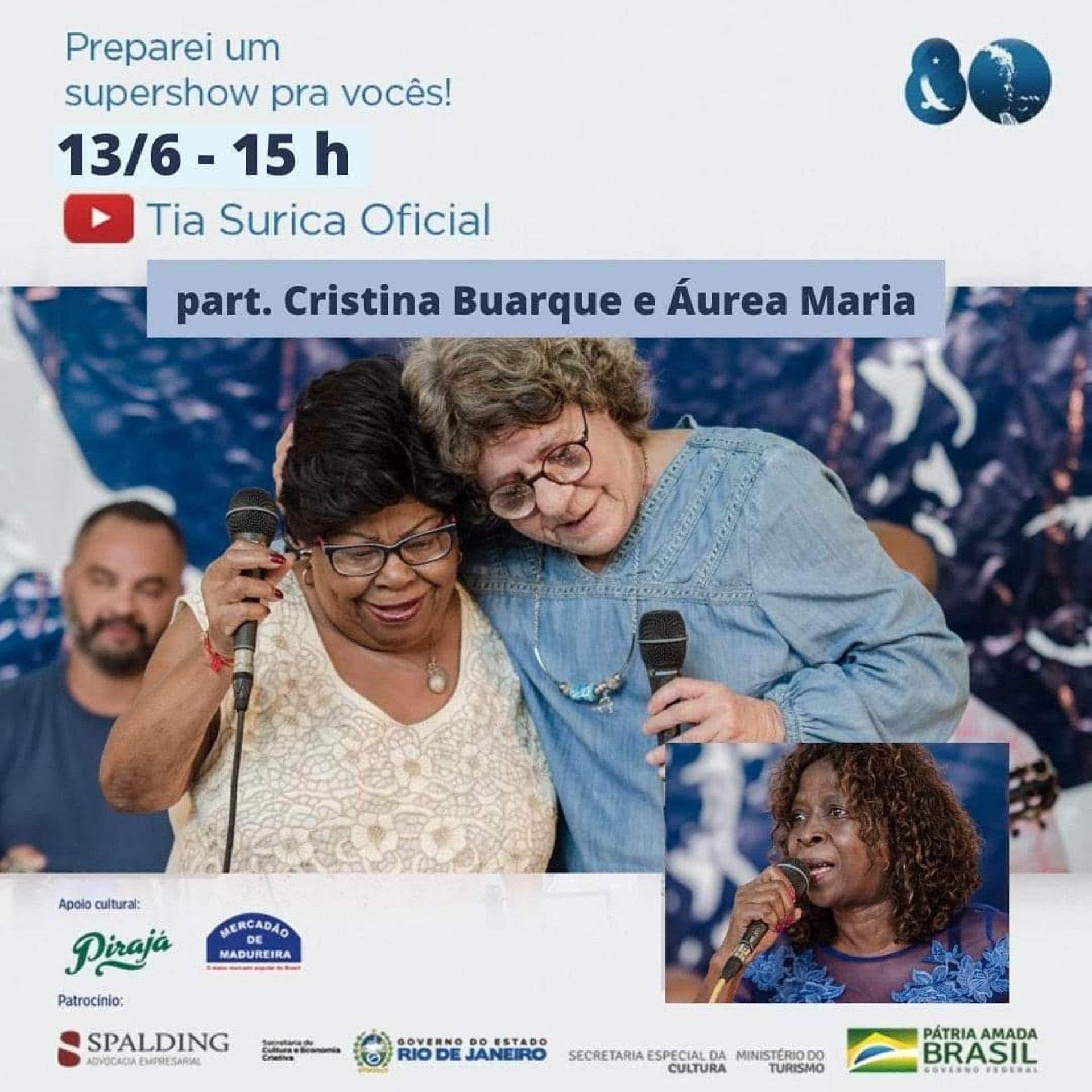 Foi assim que surgiu o projeto “Tia Surica da Portela, 80 anos”, viabilizado graças ao edital promovido pela Secretaria de Estado de Cultura e Economia Criativa do Rio de Janeiro, do Governo do Estado do Rio de Janeiro, por meio da Lei Aldir Blanc, sancionada pelo Governo Federal. Várias ações fazem parte dessa proposta.