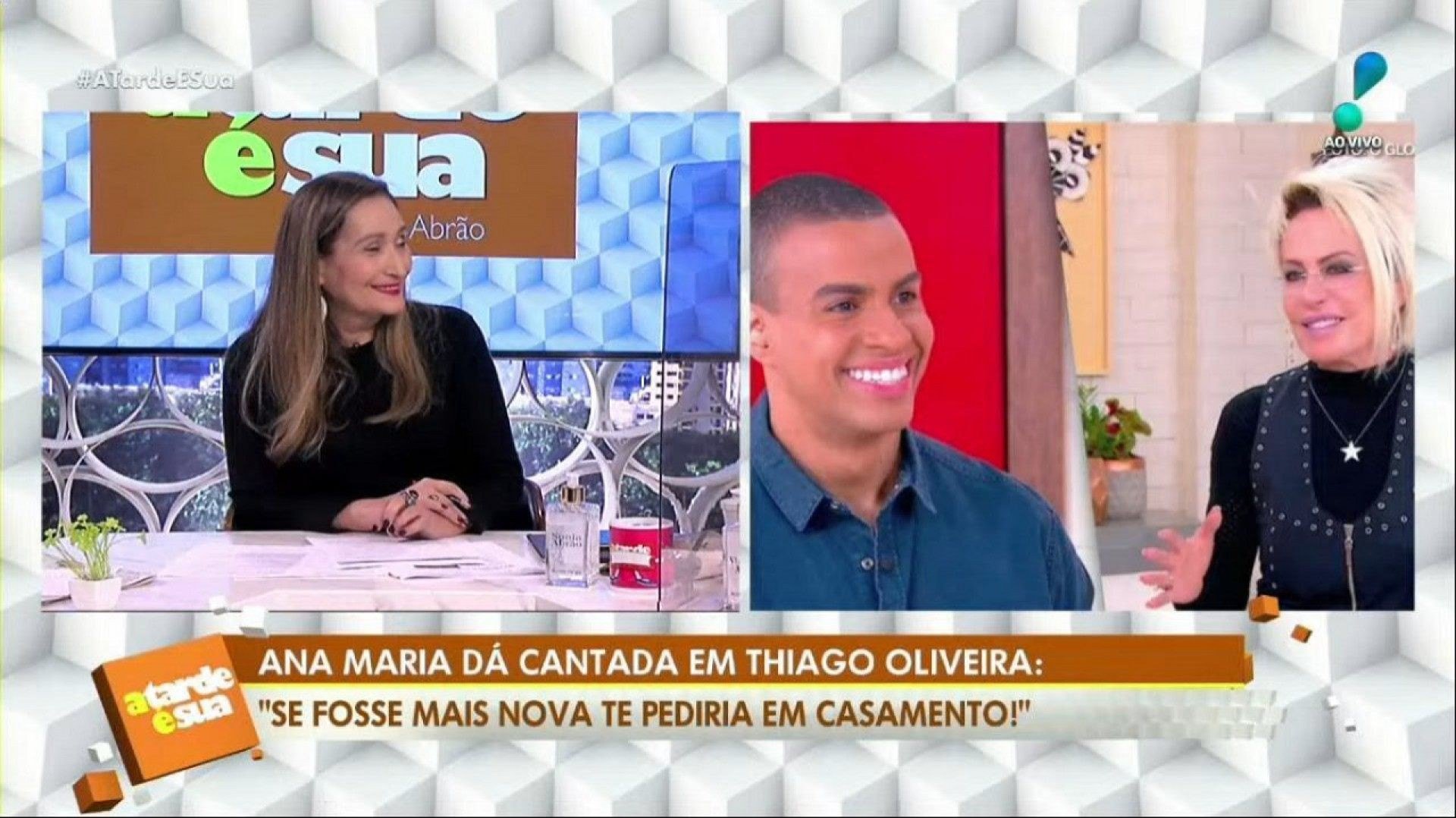 Após o repórter Thiago Oliveira receber uma "cantada" de Ana Maria Braga no programa 'Mais Você', na tarde desta segunda-feira (9), a apresentadora Sônia Abrão relembrou a época que jornalista trabalhava no 'A Tarde é Sua'. A comunicadora revelou que Thiago era muito paquerado e que ele chegou a se interessar por uma artista.