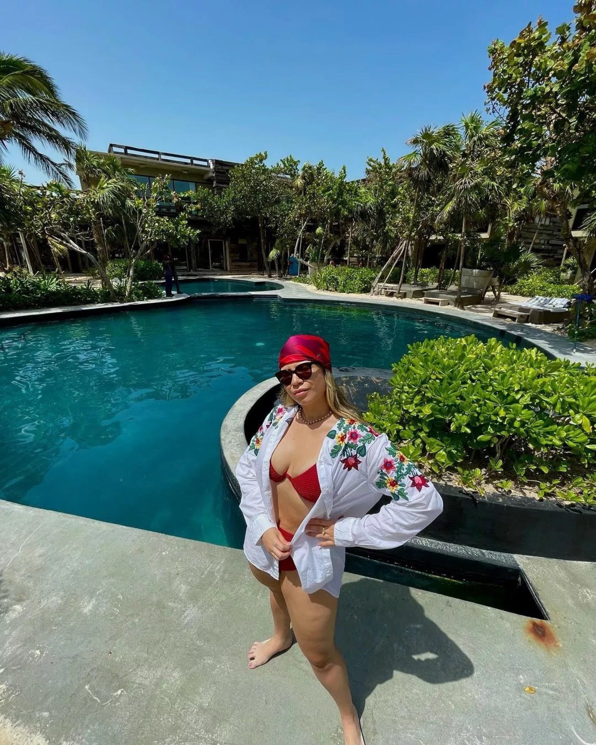 "Te observam, te criticam, te invejam e no final te imitam", escreveu ela na legenda do post, em espanhol. No Twitter, Marília ainda brincou: "É a musa do verão, calor no coração".