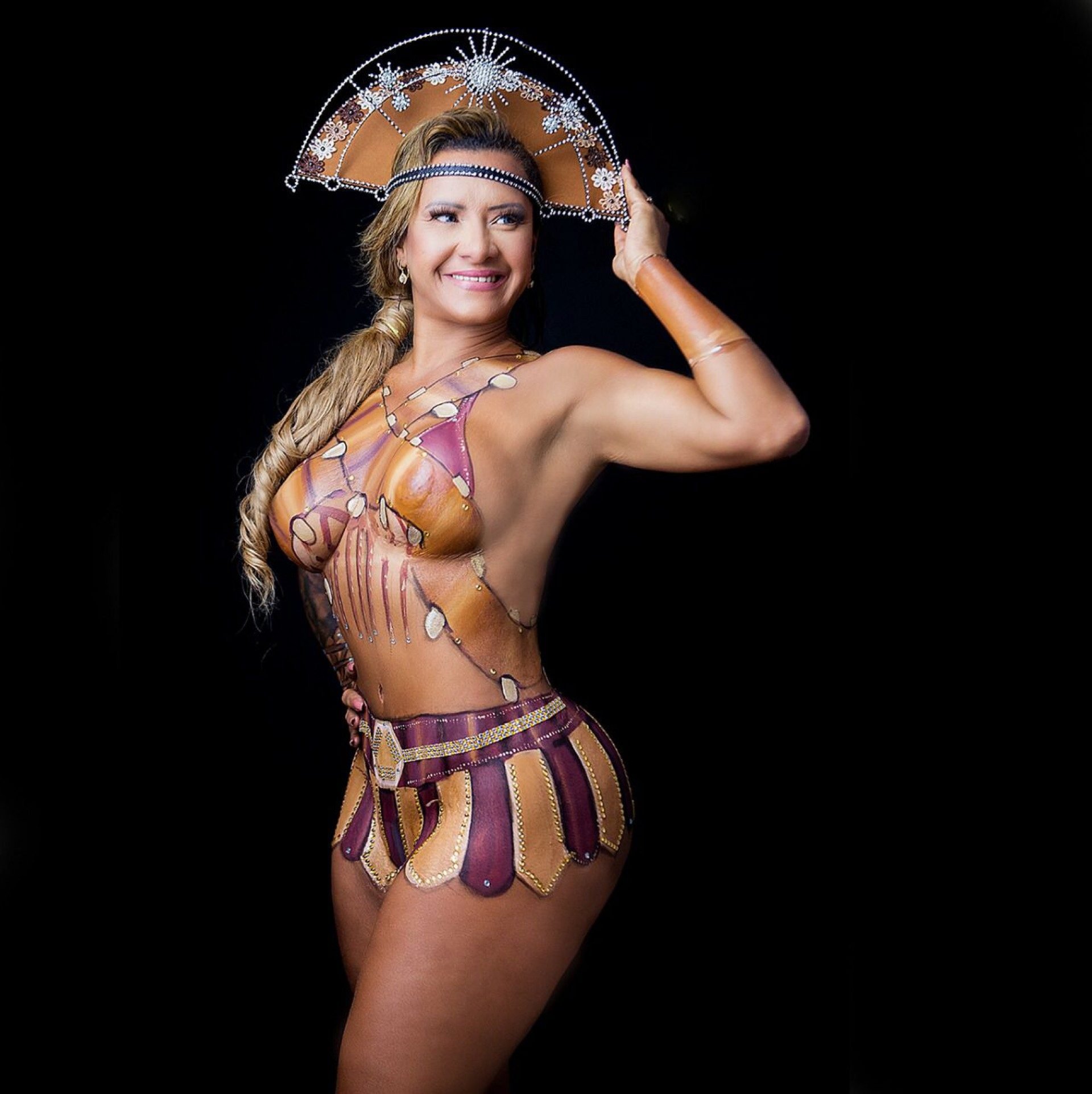 Para o ensaio específico, a pintura foi realizada pelo Artista Plástico Madison Araújo. Todo o processo levou cerca de uma hora e meia para a conclusão.