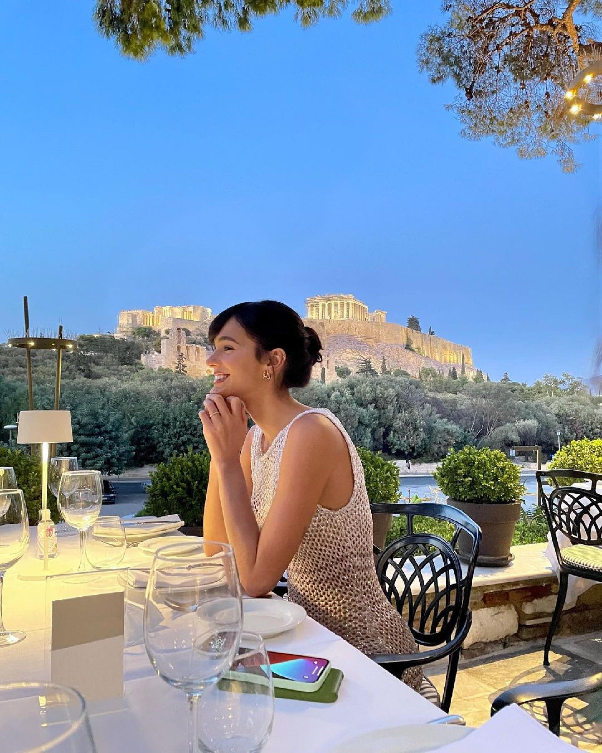 “24 horas em Atenas”, publicou a atriz no feed do Instagram.