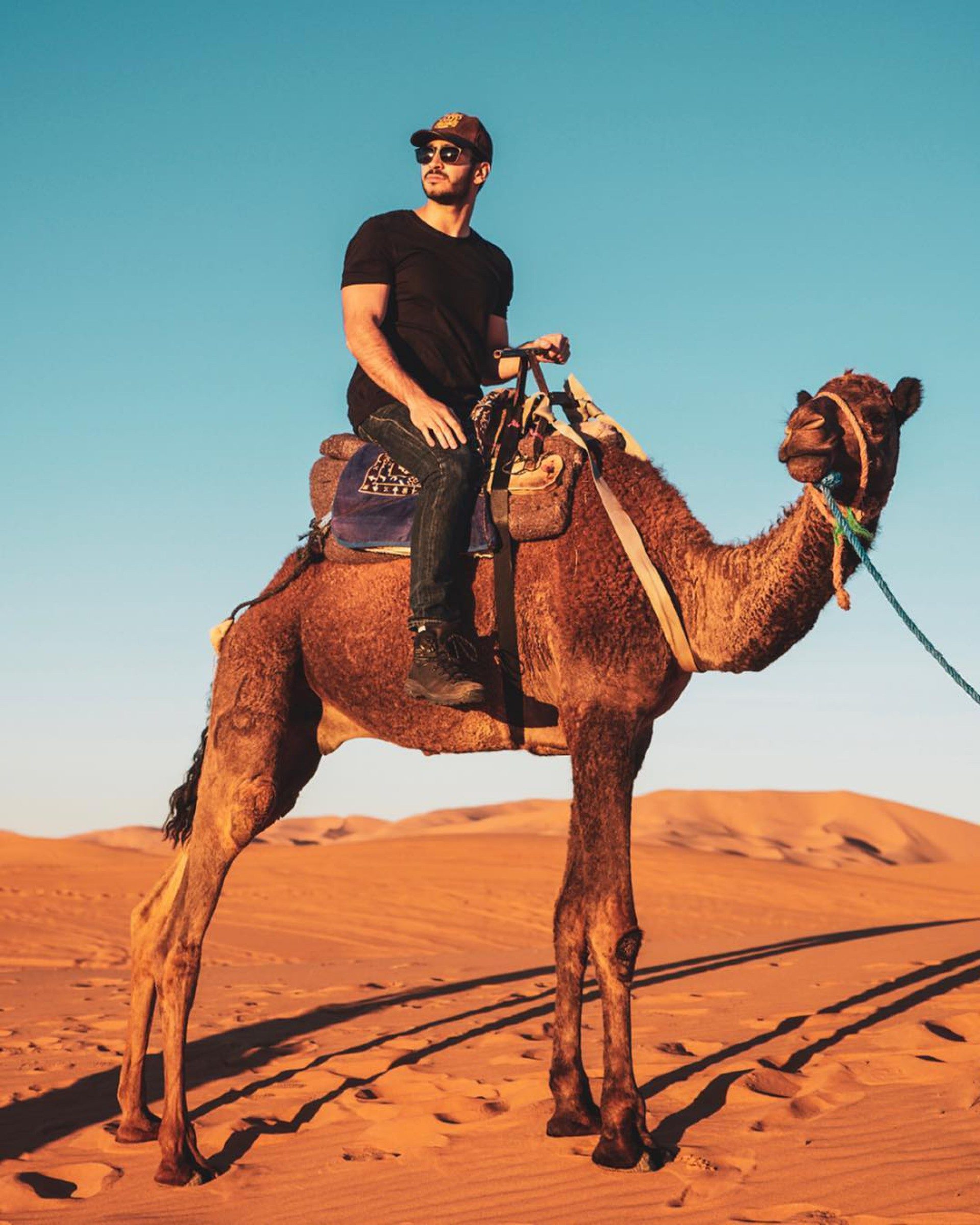 Viajando a trabalho, em seus dias no país, ele aproveitou para passear de camelo no deserto do Saara, andar pelas mesquitas e conhecer a cidade de Ouarzazate, que é conhecida por ser a Hollywood do deserto. Ela possui grandes estúdios de cinema, onde foram gravados muitos filmes e séries como Game Of Thrones, Gladiador, Ali Baba e os 40 ladrões, entre muitos outros.