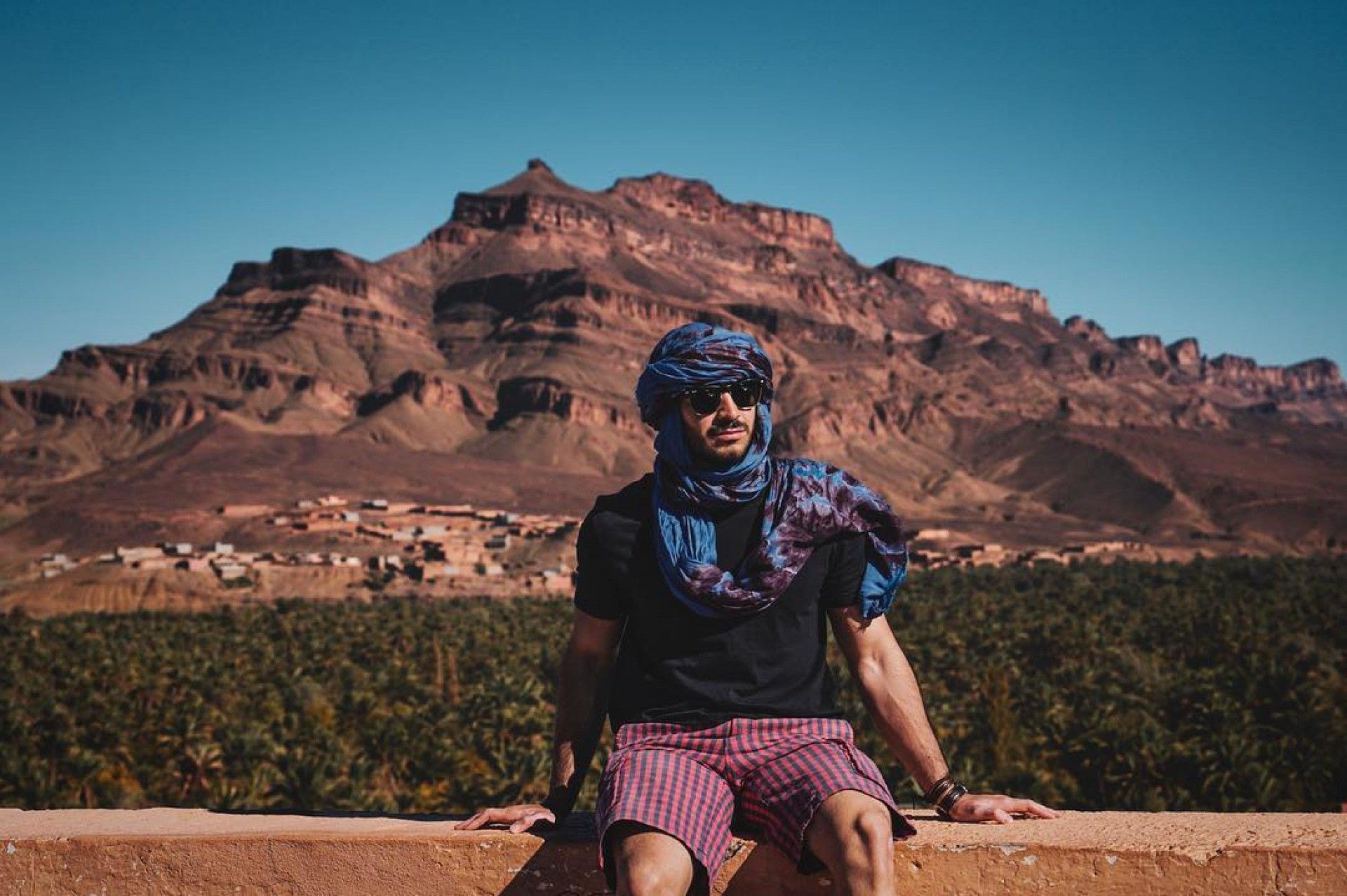 Marcello Sortino publicou algumas fotos maravilhosas de sua passagem por Marrocos. O influencer e filmmaker compartilhou registros de sua viagem com a coluna. Em Marrakech, ele posou com um lenço na cabeça tendo ao fundo as montanhas que são cartão postal da região.