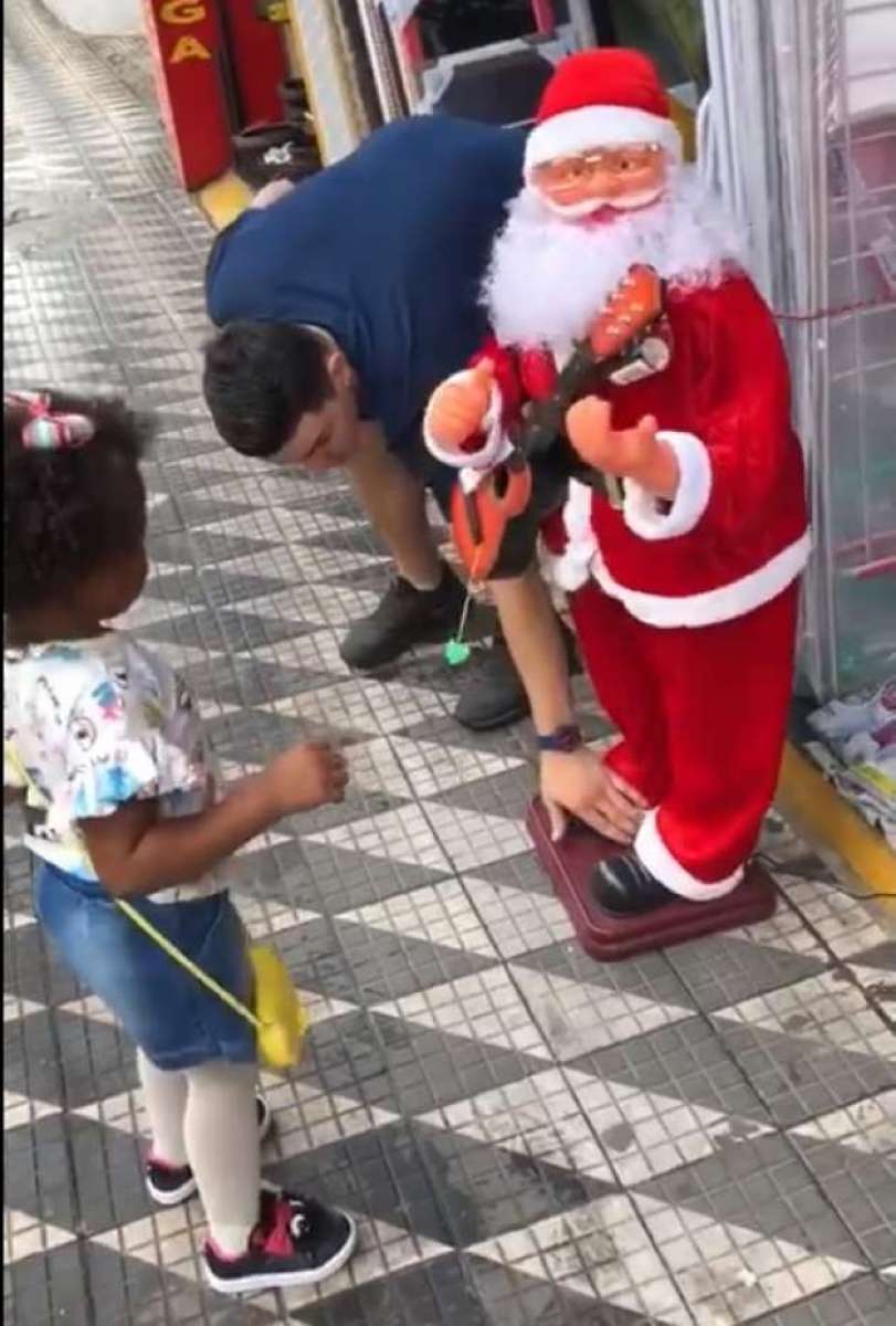 Cadê o espírito natalino? Essa é a pergunta que qualquer um deve se fazer ao assistir um funcionário, que desliga o Papai Noel de brinquedo enquanto uma criança se diverte. Todos nós já fomos crianças, e com Papai Noel não se brinca, né mores?